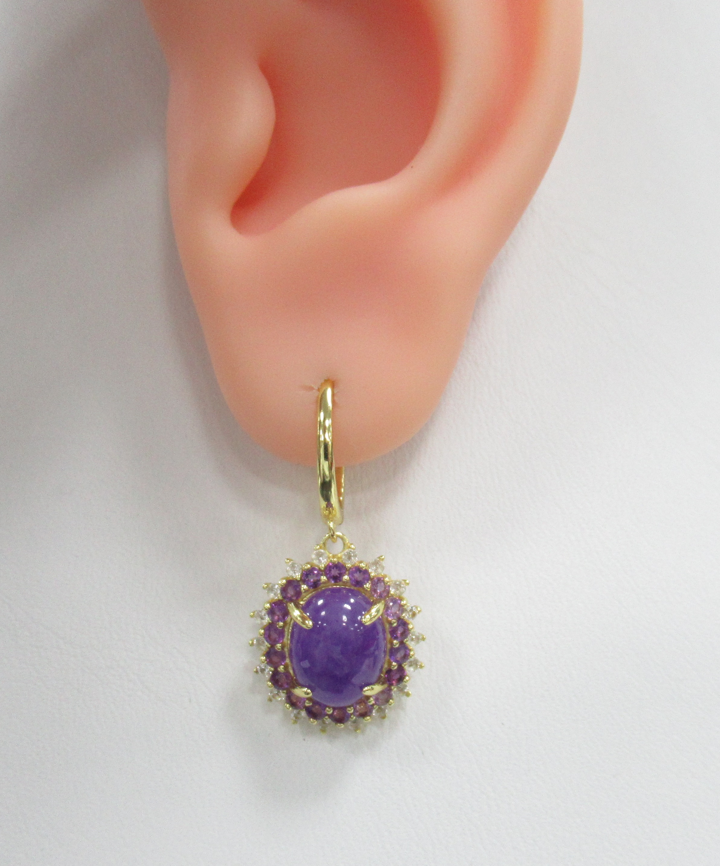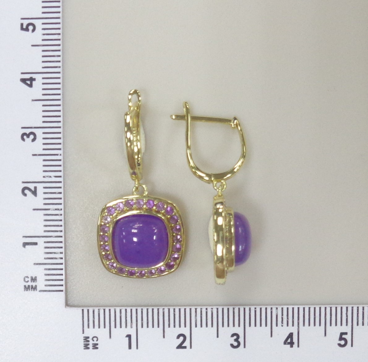 Серебряные серьги-пусеты с флюоритами и аметистами