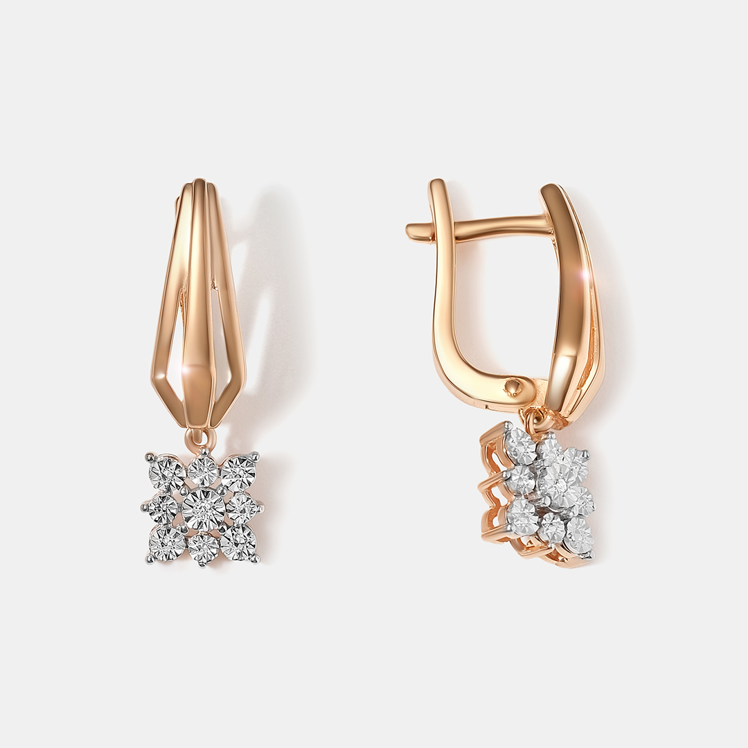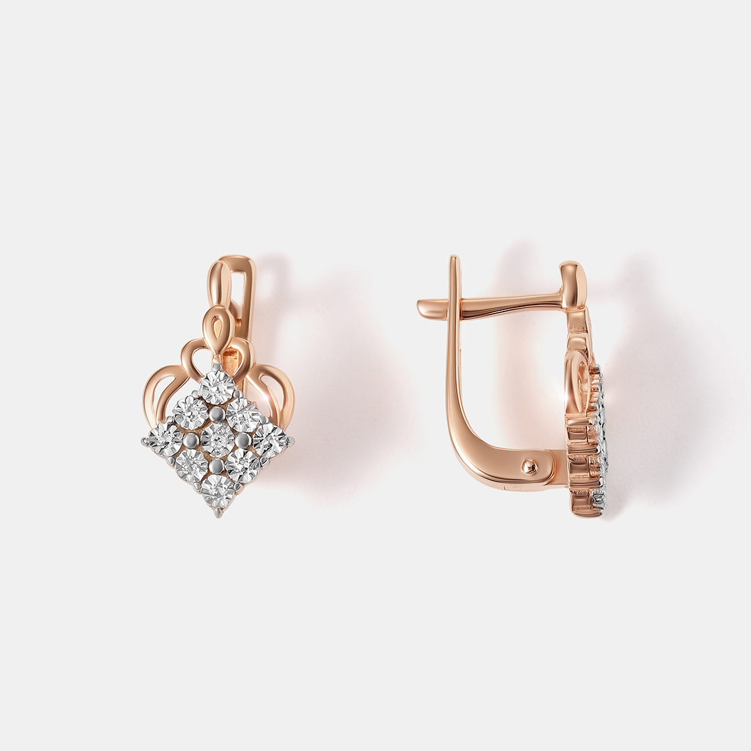 Серьги-пусеты из комбинированного золота с бриллиантами