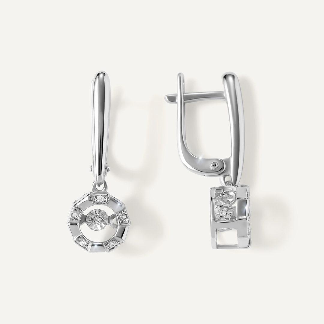 Серебряные серьги с бриллиантами "Танцующий камень"