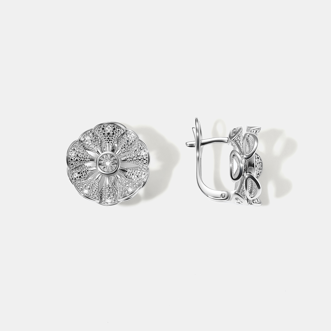 Серебряные серьги-пусеты с бриллиантами "Цветы"