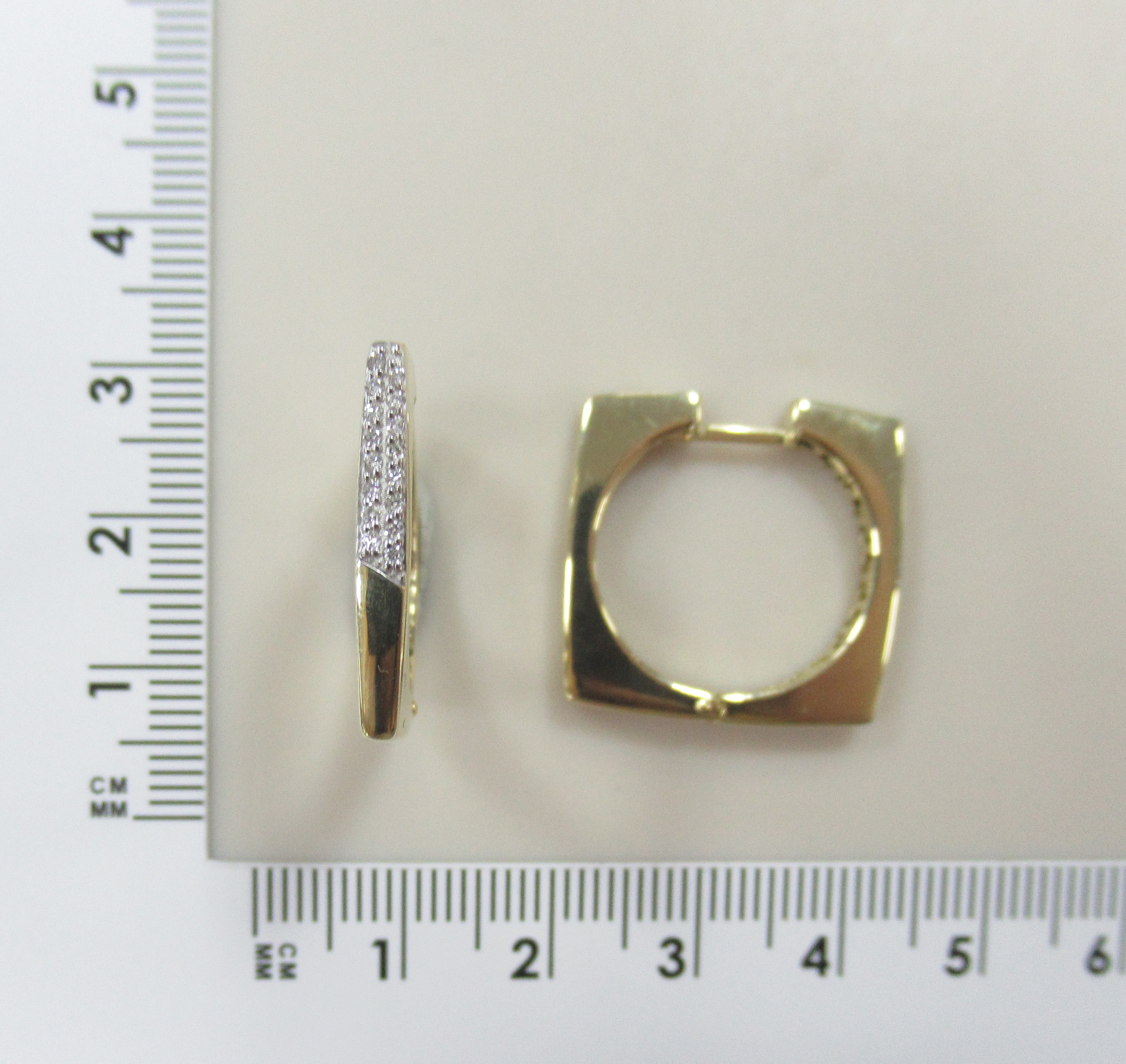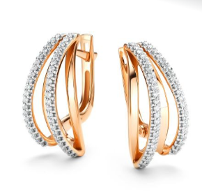 Золотые серьги 585 пробы; желтое золото; родий; вставки 16 Бр.Кр-57 0,361 3/6А; 8 Бр.Кр-57 0,104 3/6