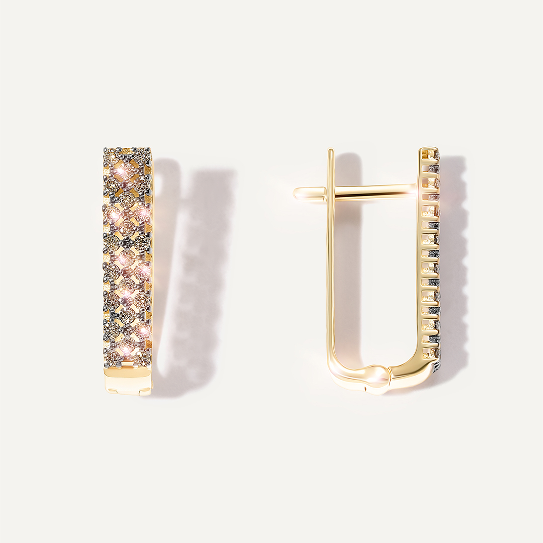 Серьги-пусеты из золота с коньячными бриллиантами