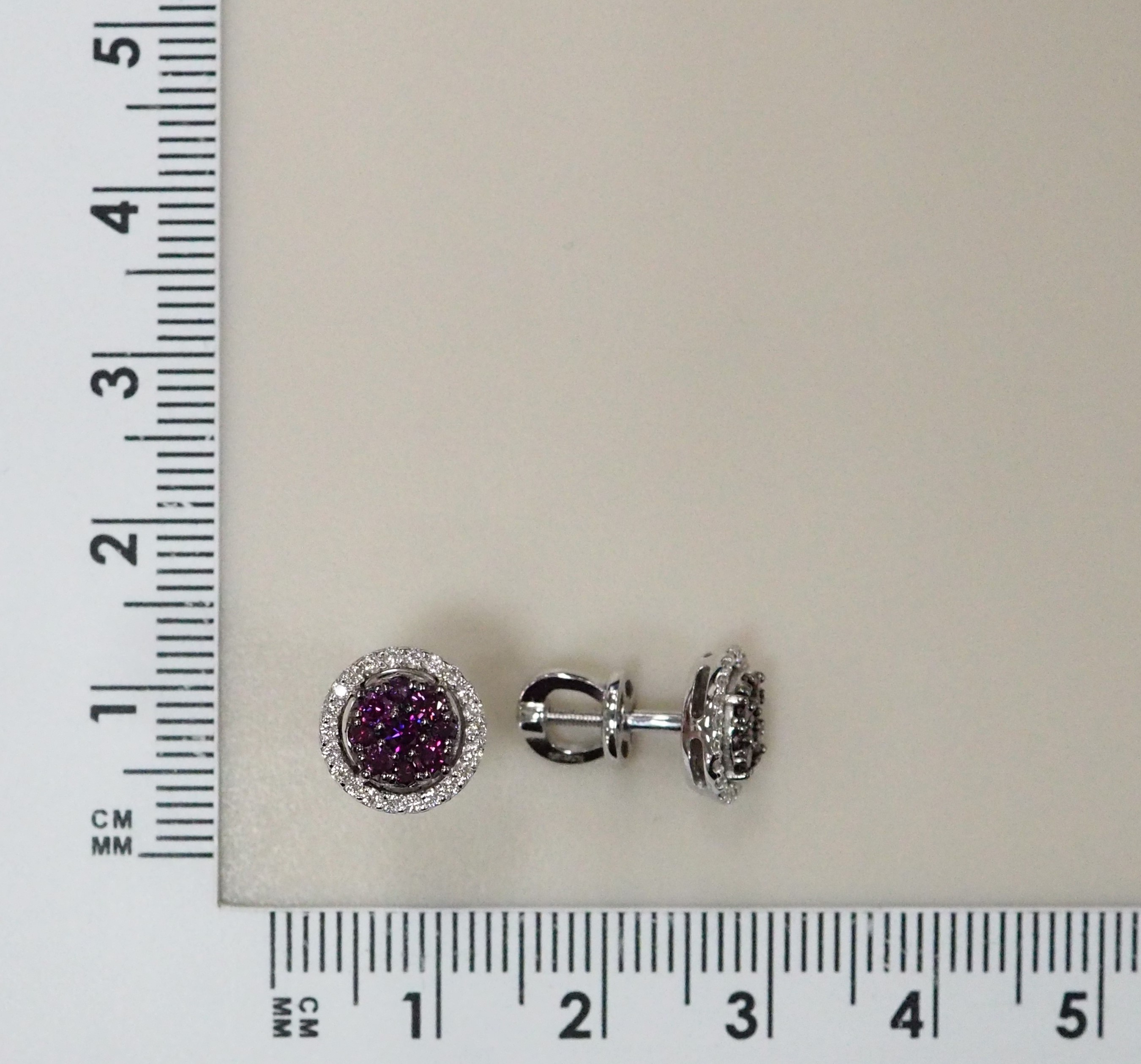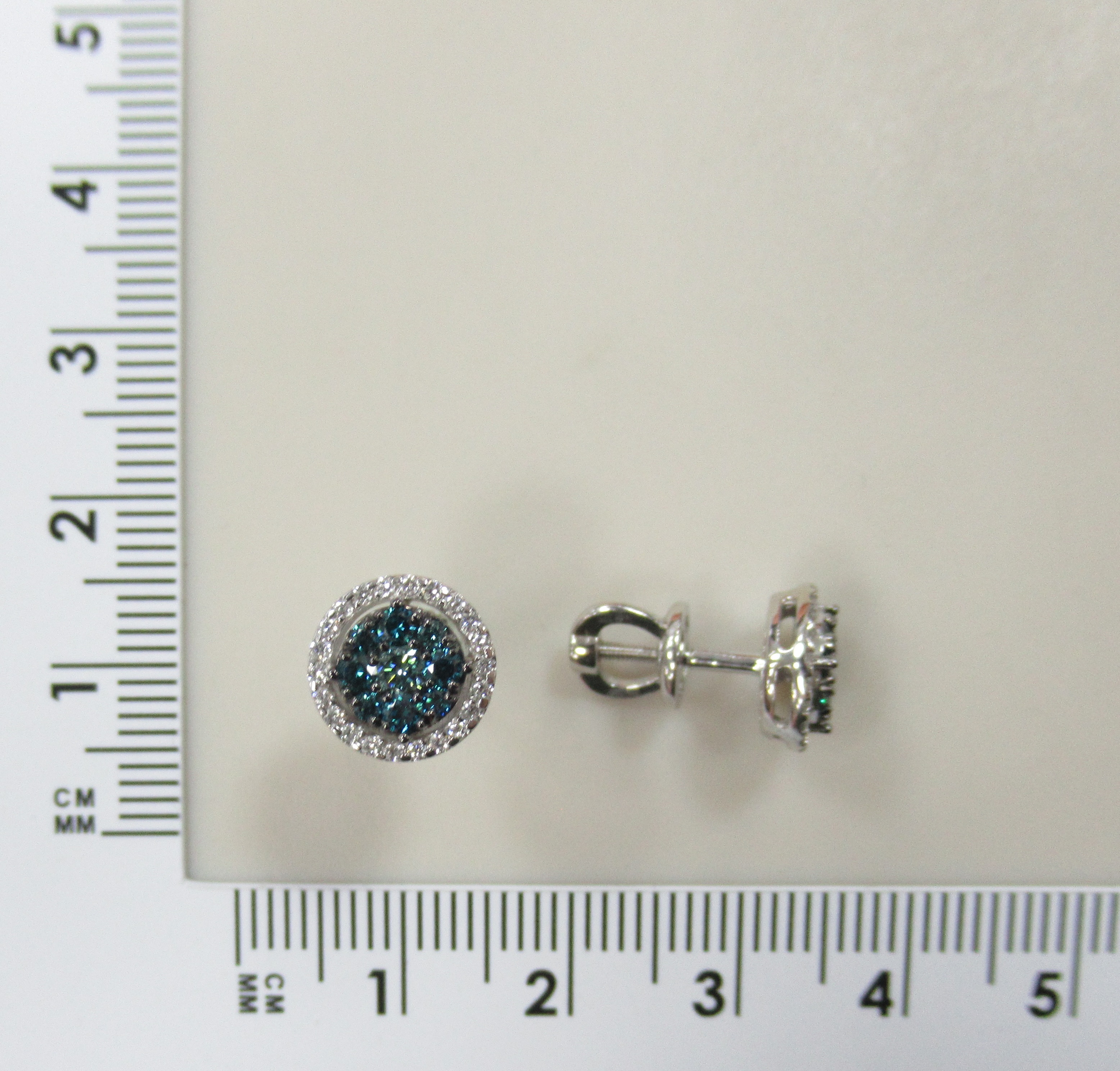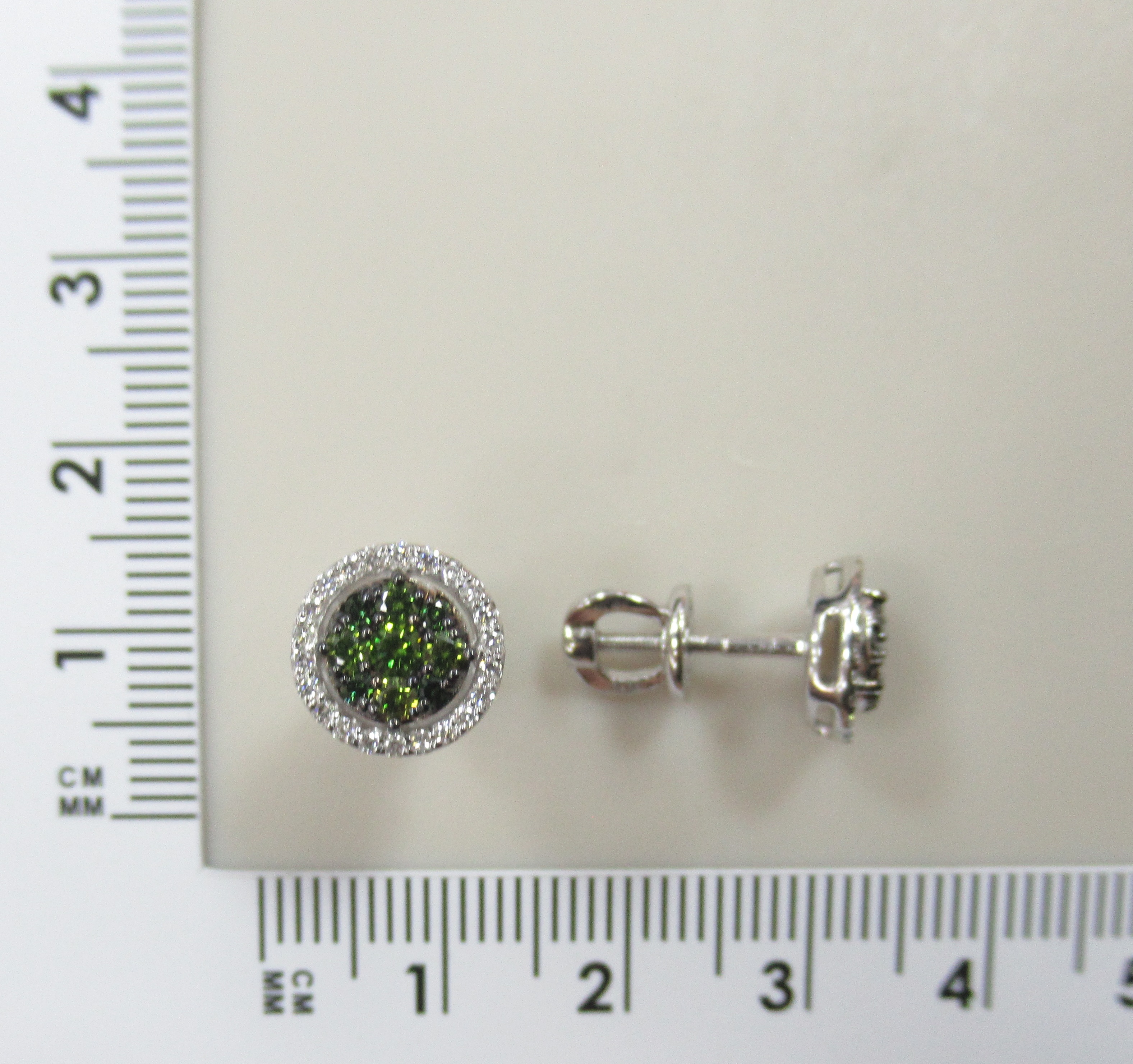 Золотые серьги-пусеты 585 пробы; белое золото; родий; вставки 6 Бр.Кр-57 0,358 3/6А; 2 Бр.Кр-57 0,06