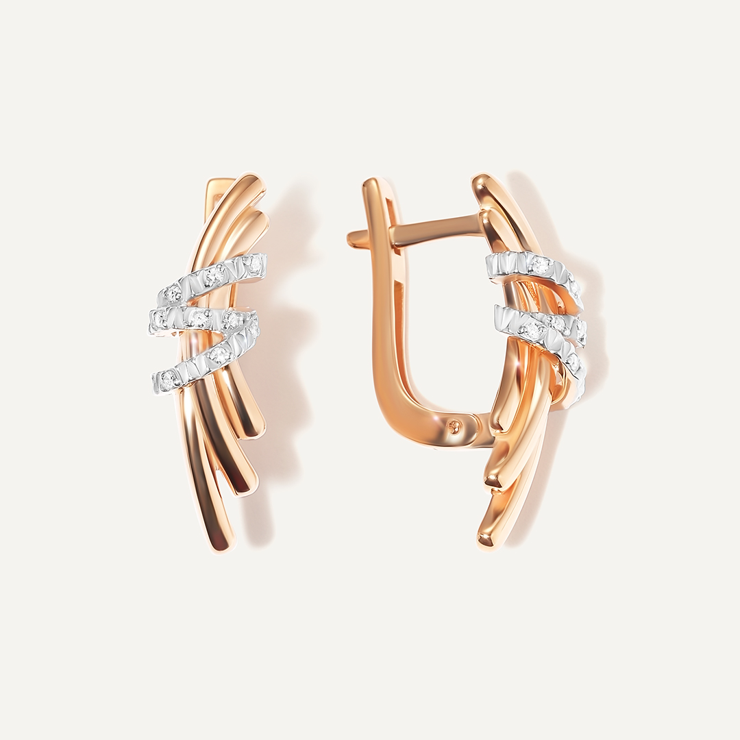 Серьги-пусеты из комбинированного золота с бриллиа...