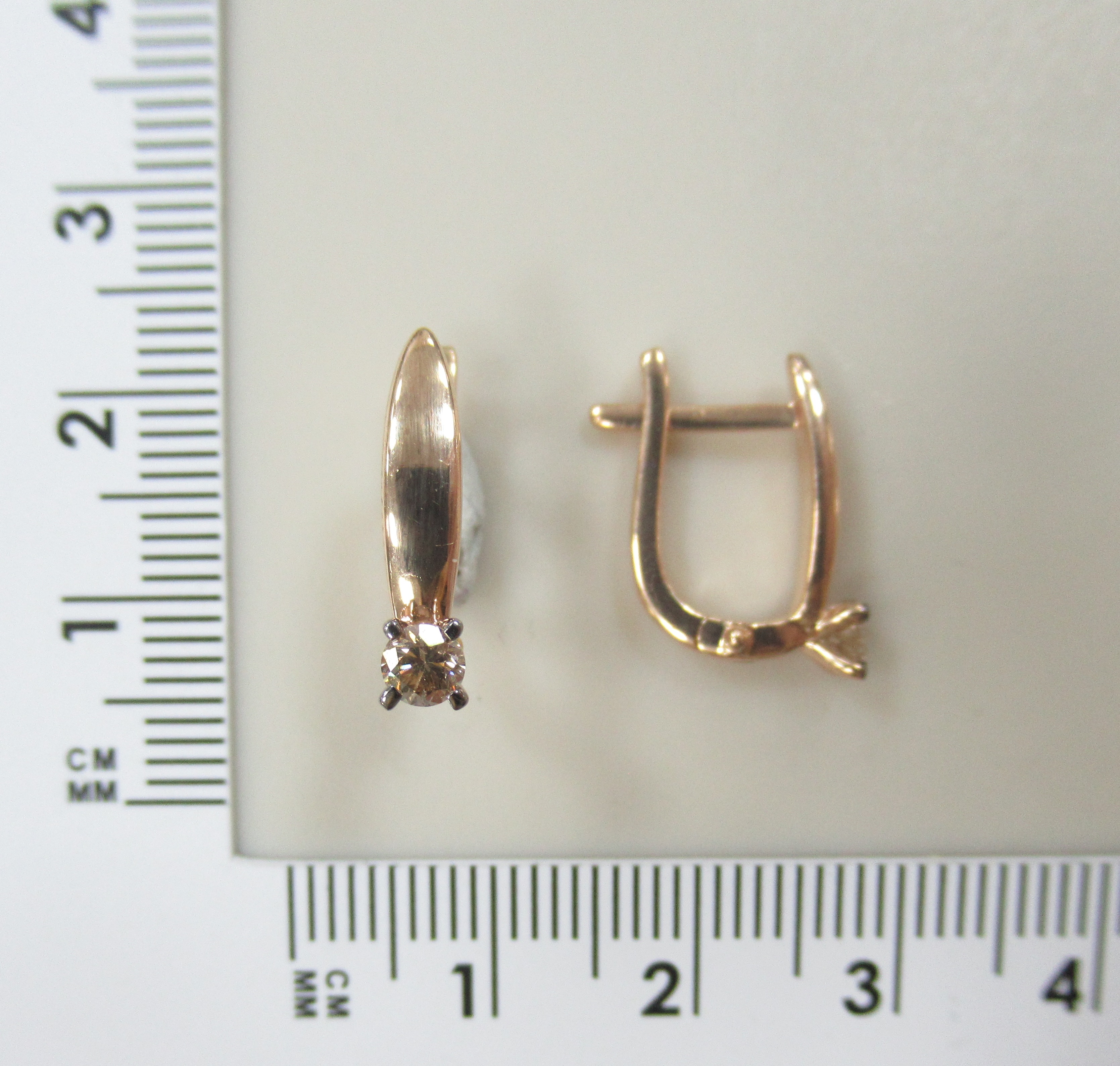 Серьги-пусеты из комбинированного золота с коньячными бриллиантами