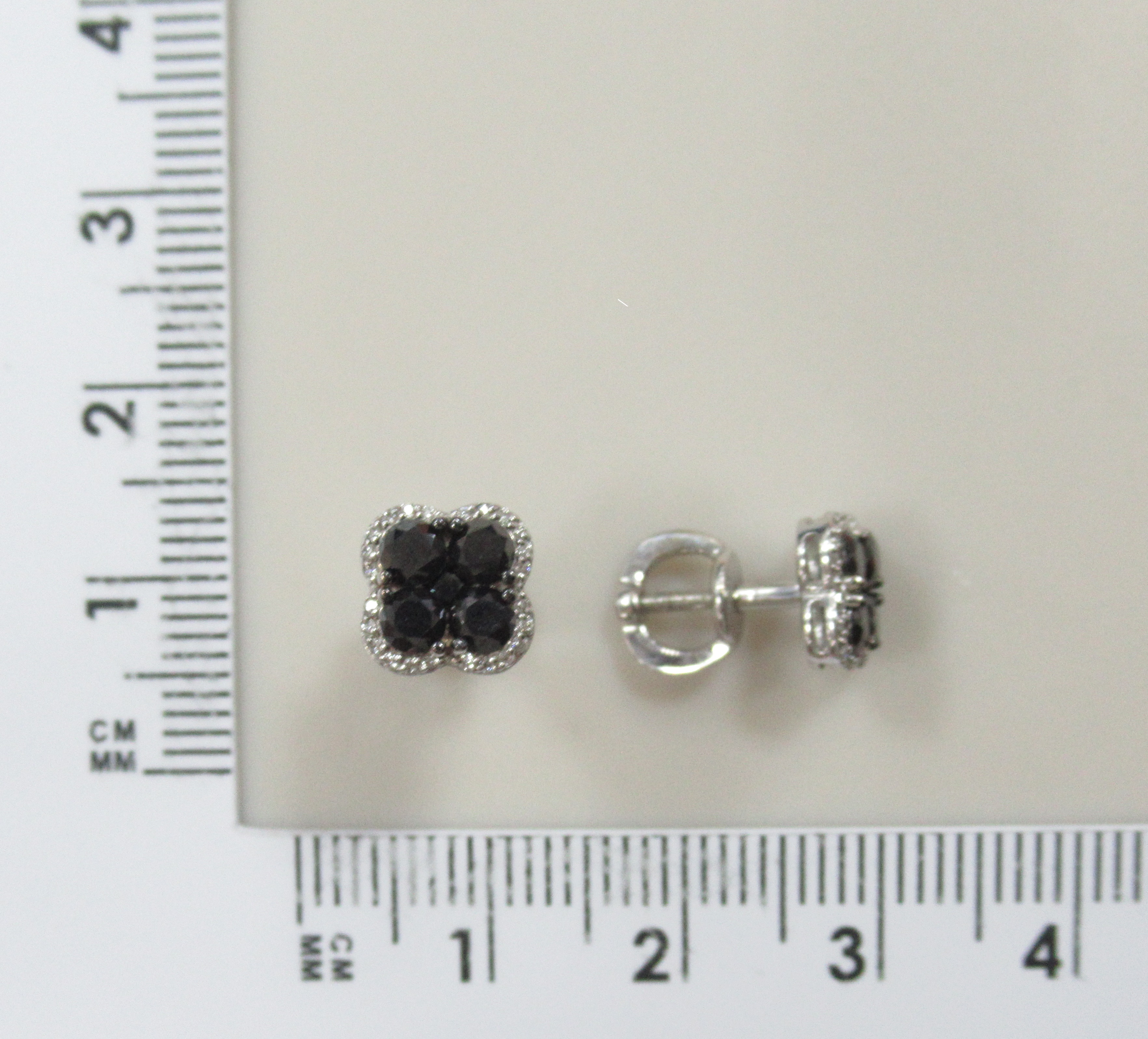 Золотые серьги-пусеты 585 пробы; родий(бел.,черн.); вставки 8 Бр.черн.Кр-57 1,064 7/6А; 2 Бр.черн.Кр