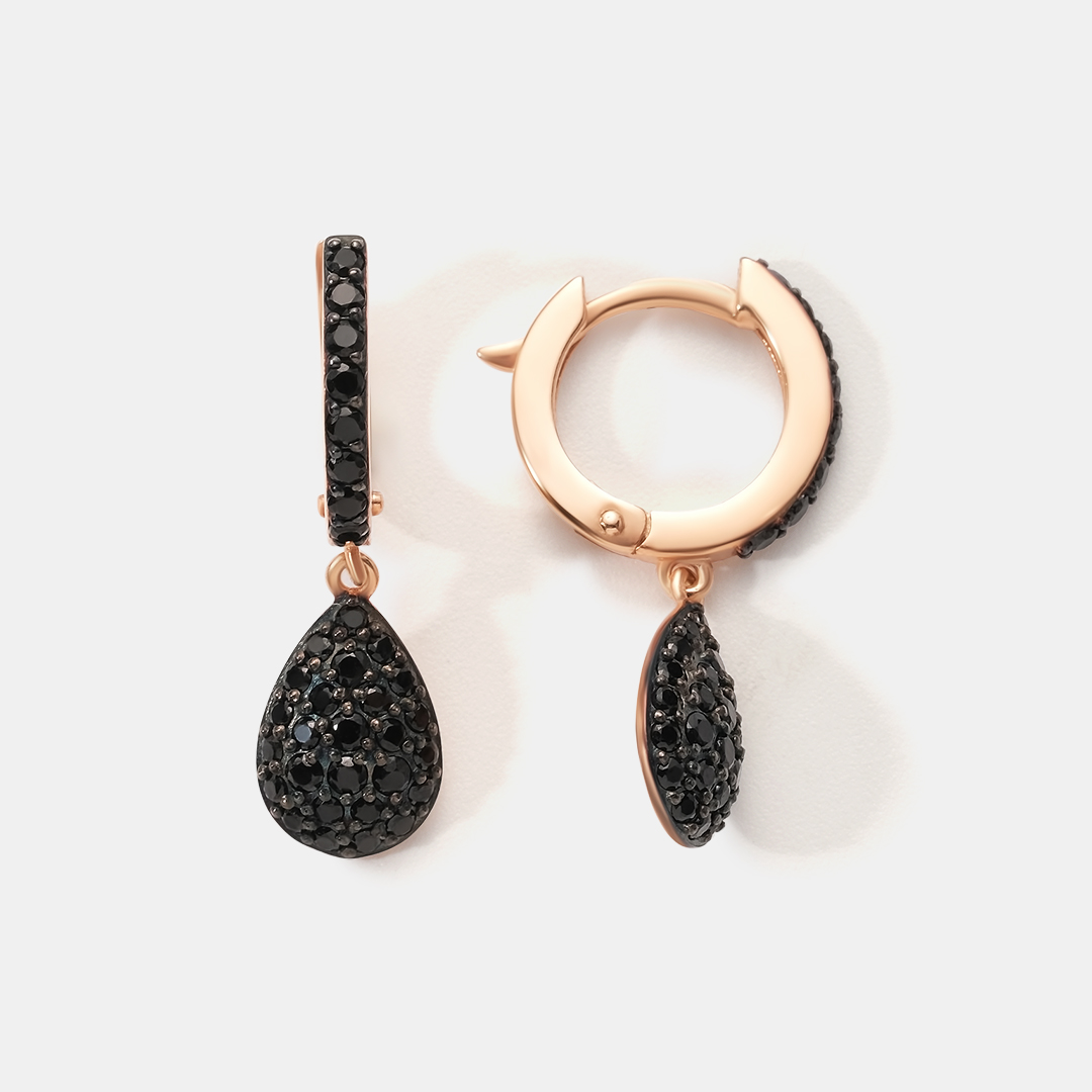Серьги из комбинированного золота с родолитом и черным бриллиантом