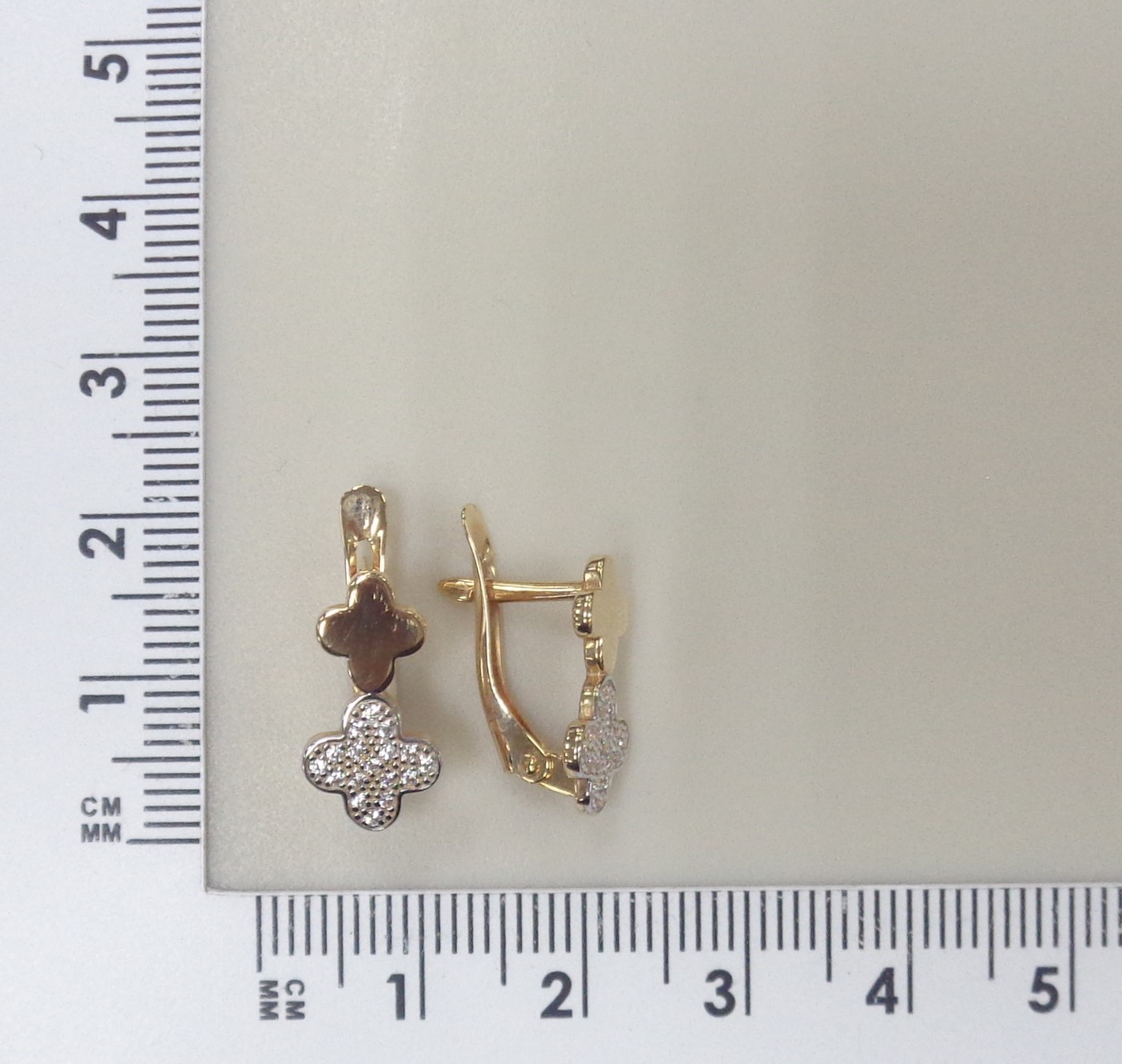Золотые серьги 585 пробы; желтое золото; родий; вставки 18 Фианит бесцв.;