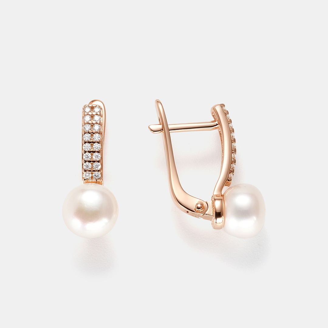 Серьги-пусеты из золота с жемчугом