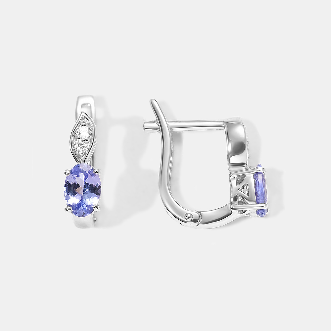 Серебряные серьги-пусеты с танзанитами "Цветы"
