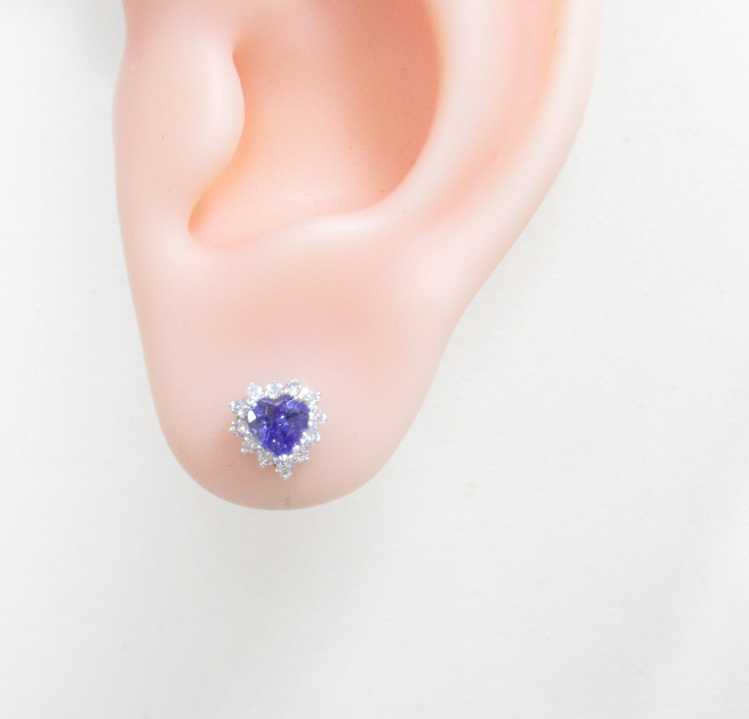 Серьги-пусеты из белого золота с танзанитами "Сердца"
