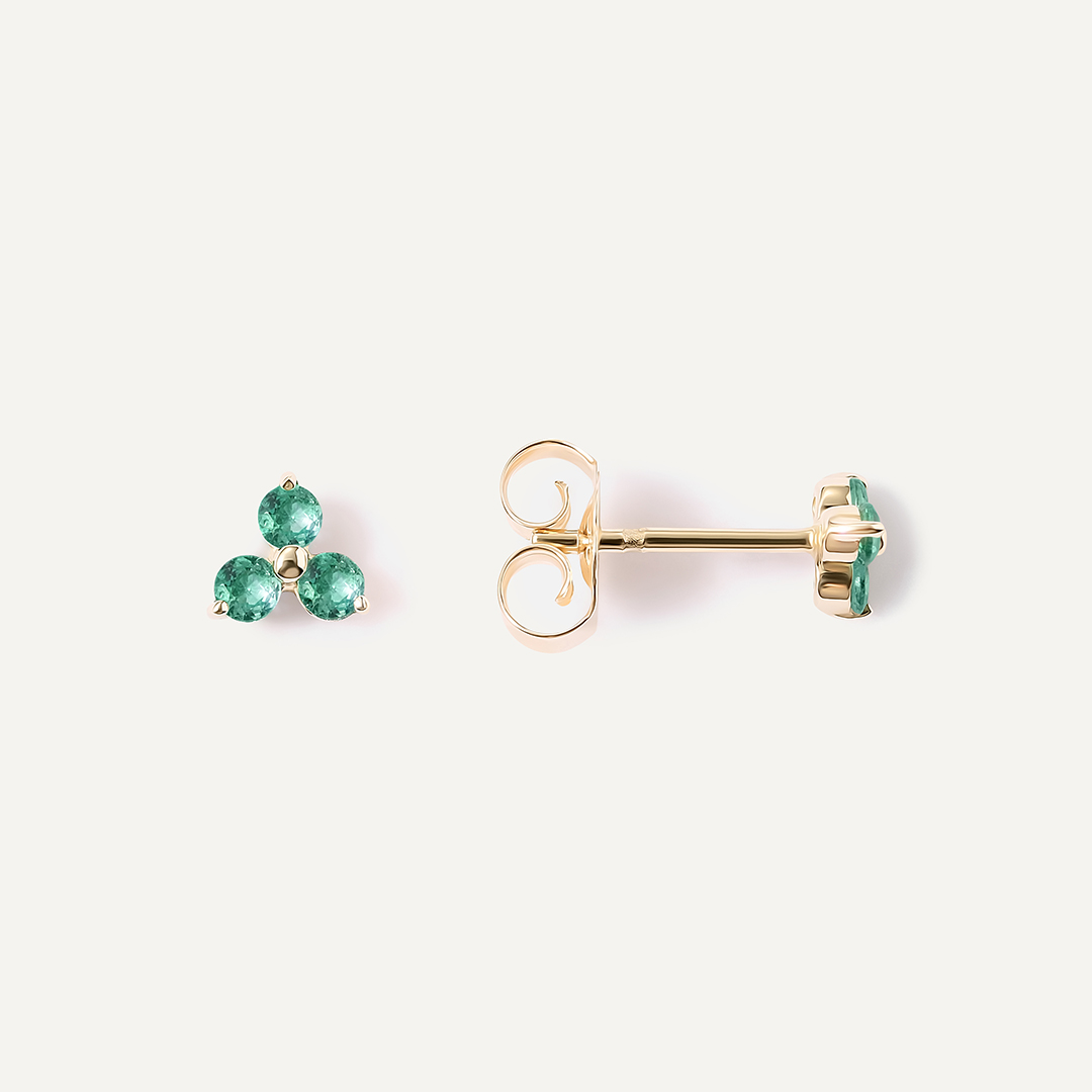 Серьги-пусеты из золота с изумрудами "Клевер"