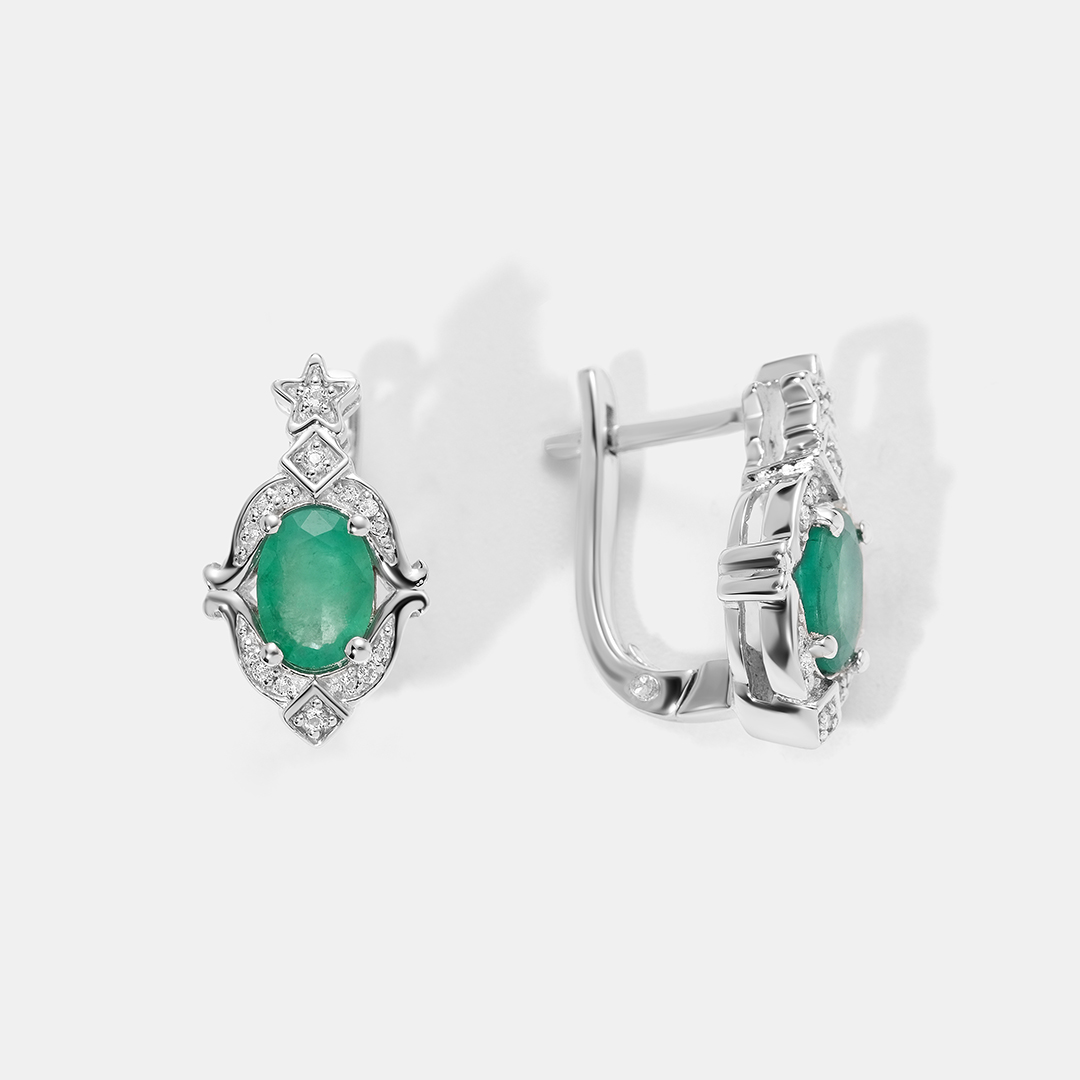 Серебряные серьги-пусеты с изумрудами "Цветы"