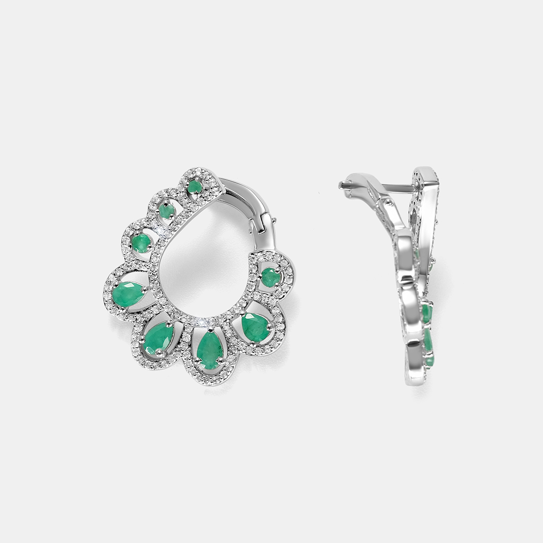 Серебряные серьги с изумрудами, сапфирами и рубинами