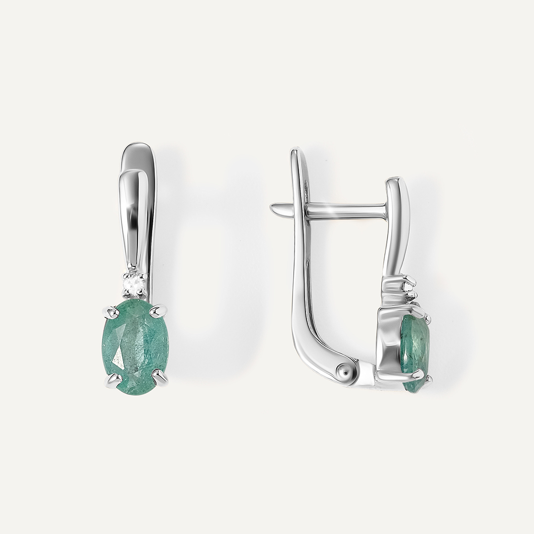 Серебряные серьги с празиолитами, изумрудами и сапфирами
