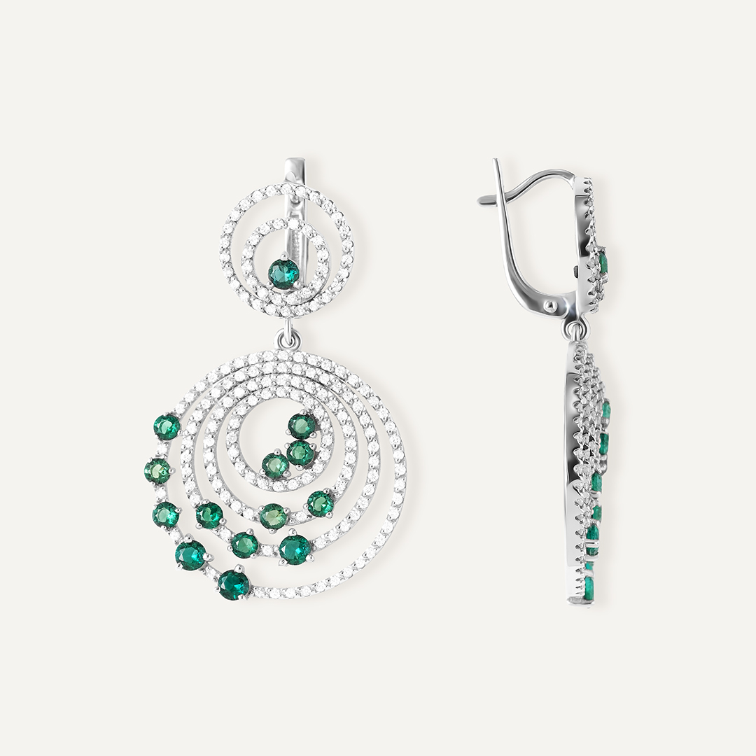 Серьги-трансформеры из белого золота с изумрудами "Клевер"