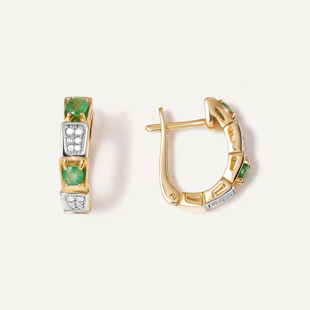 Серьги из желтого золота с изумрудами и бриллиантами "Сердца"