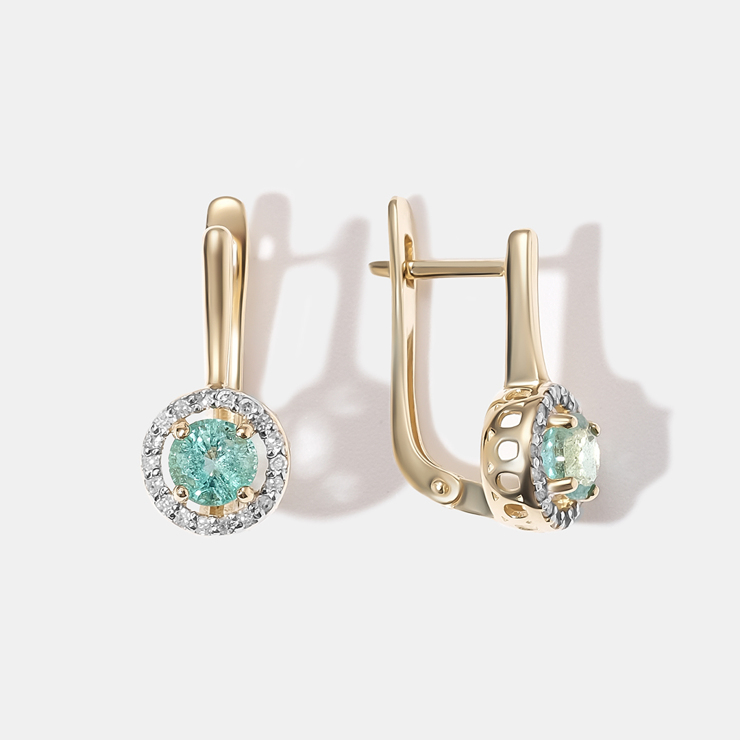 Серьги-пусеты из желтого золота с изумрудами и бриллиантами
