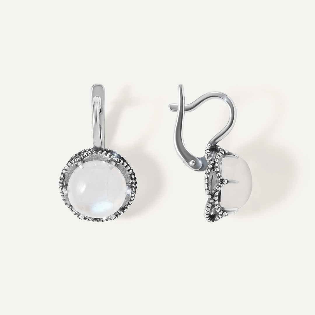 Серебряные серьги с лунными камнями