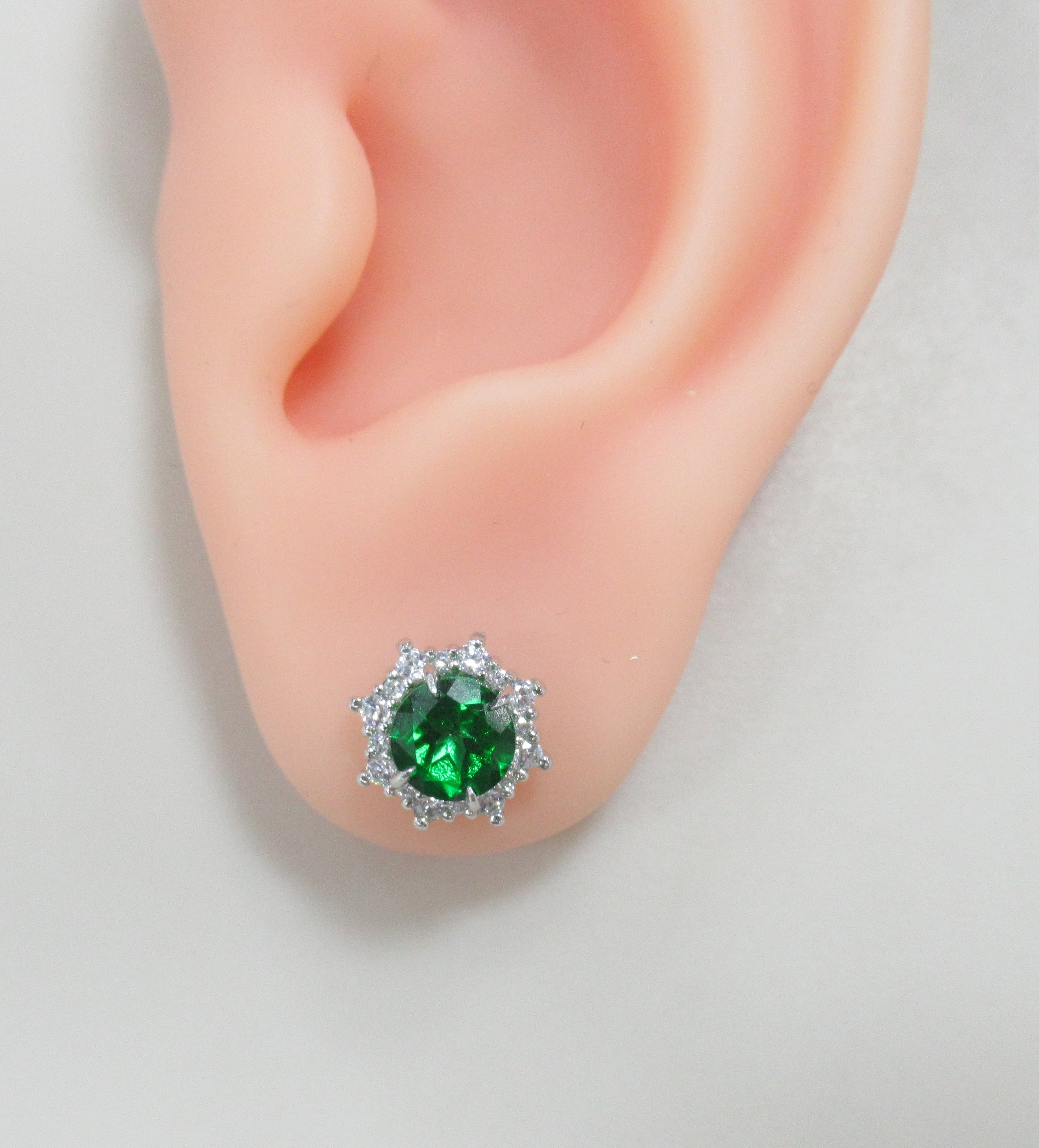 Серебряные серьги-пусеты с изумрудами