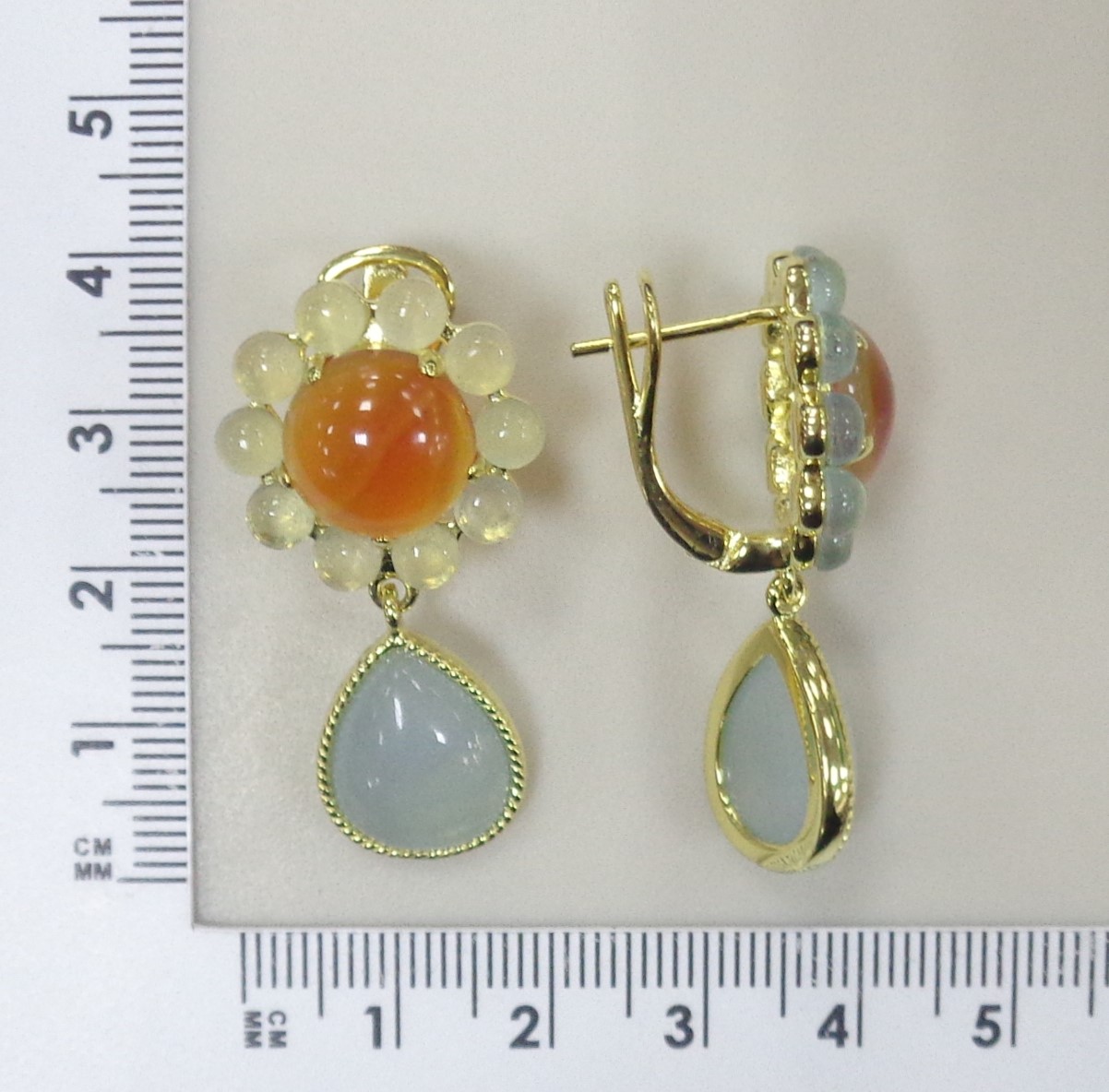 Серебряные серьги с аквамаринами и халцедонами