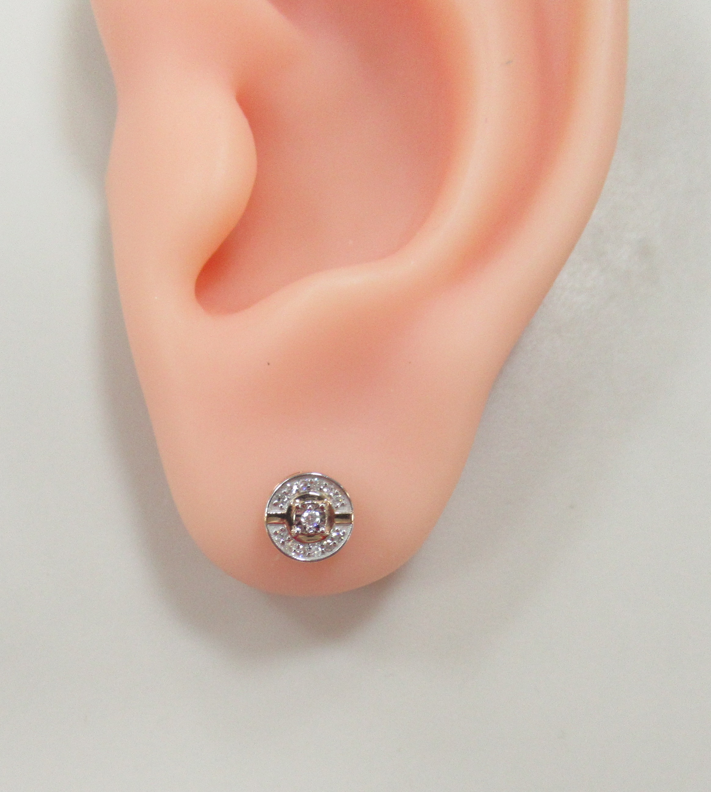 Золотые серьги 585 пробы; желтое золото; родий; вставки 2 Бр.Кр-57 4/5А 0,086; 12 Бр.Кр-57 4/5А 0,17