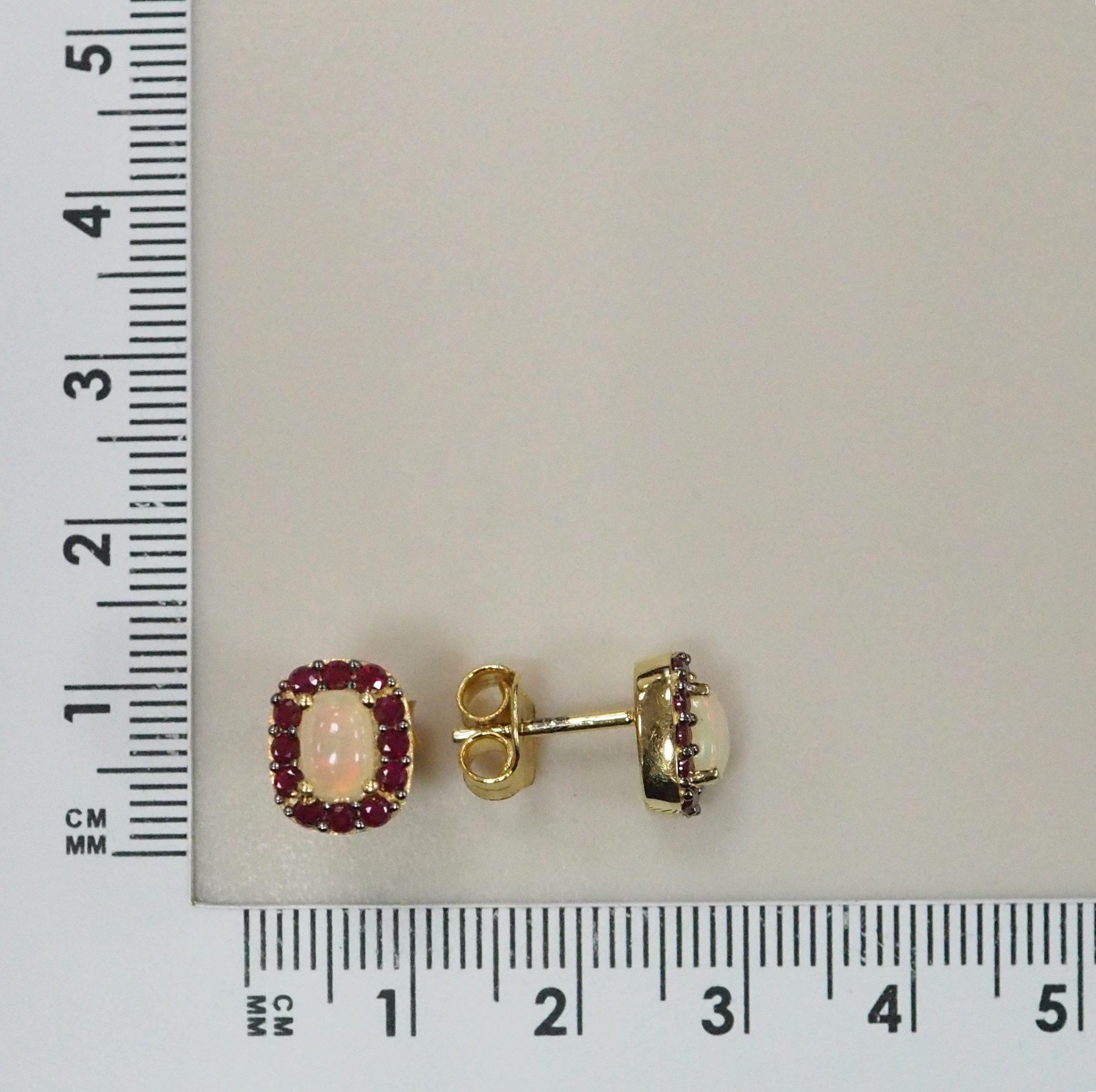 Серебряные серьги-пусеты с опалами и рубинами