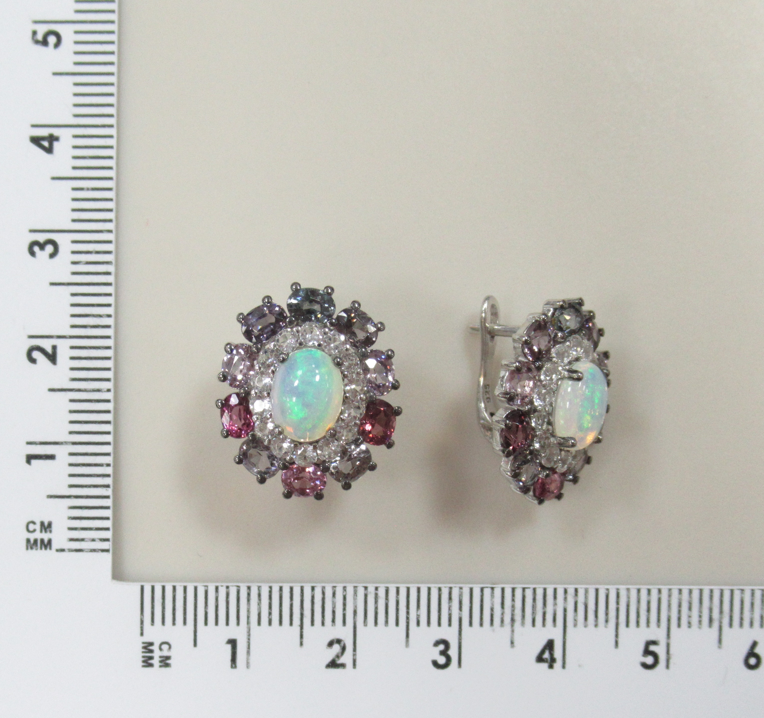 Серебряные серьги с опалами и рубинами