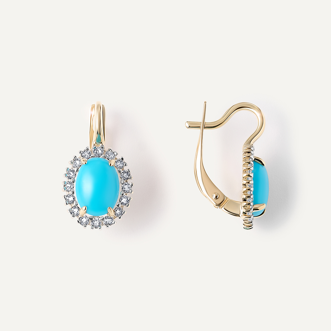 Серьги-пусеты из комбинированного золота с бриллиа...