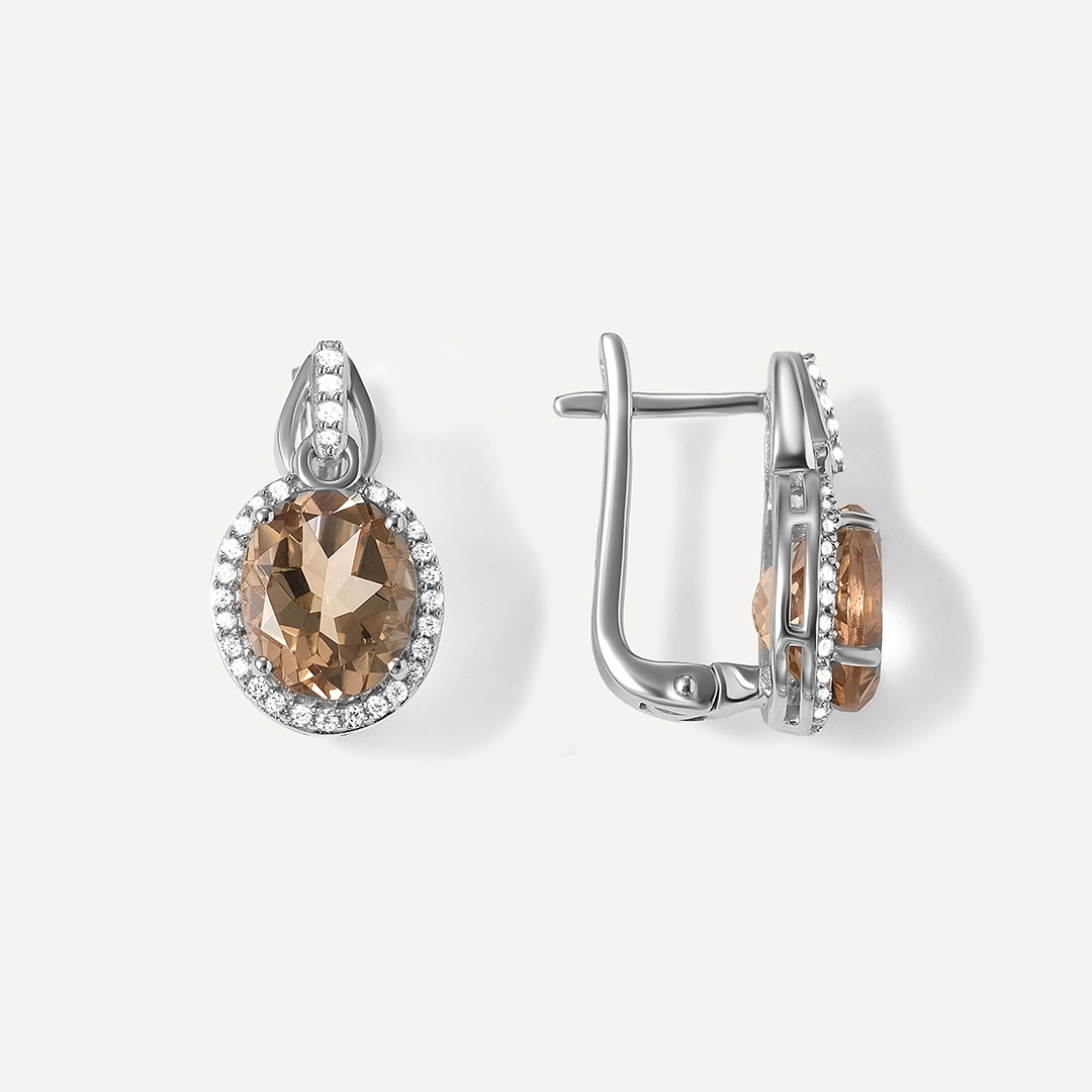 Серьги-пусеты из желтого золота с коньячными бриллиантами