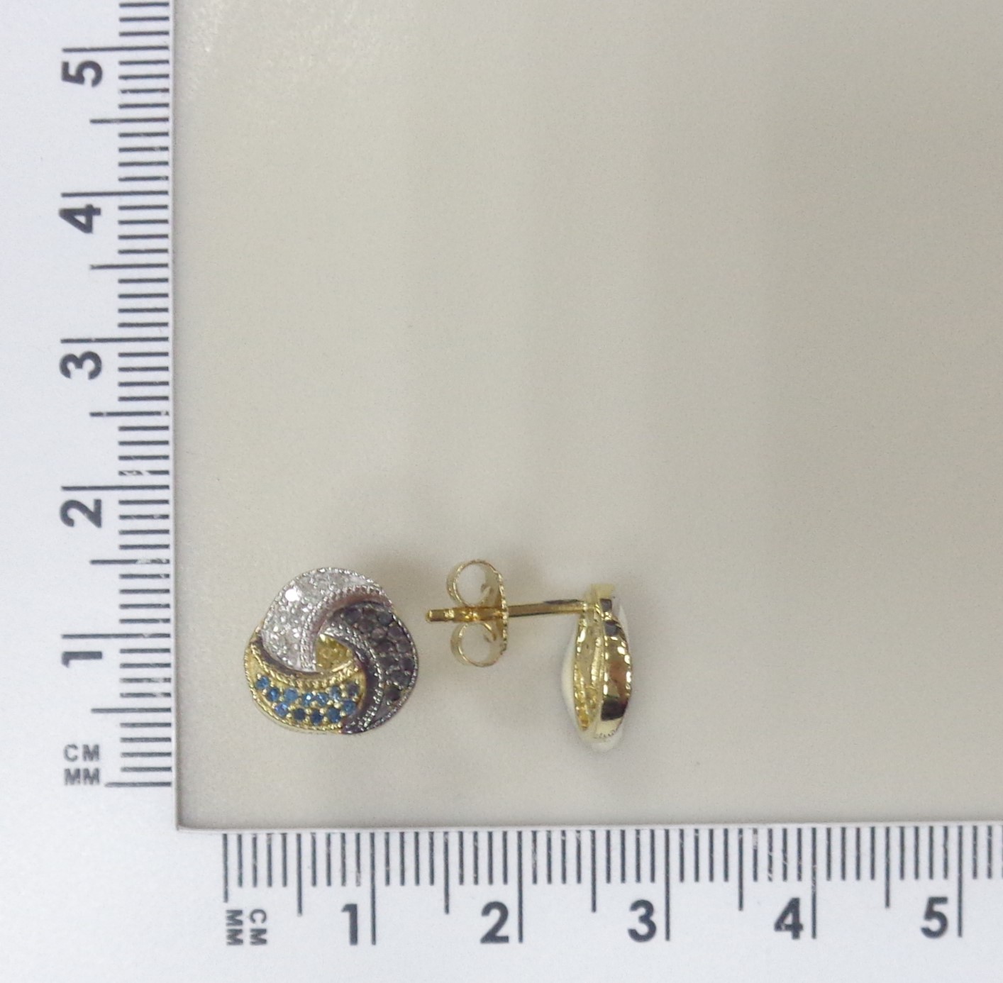 Серебряные серьги-пусеты с цветными бриллиантами