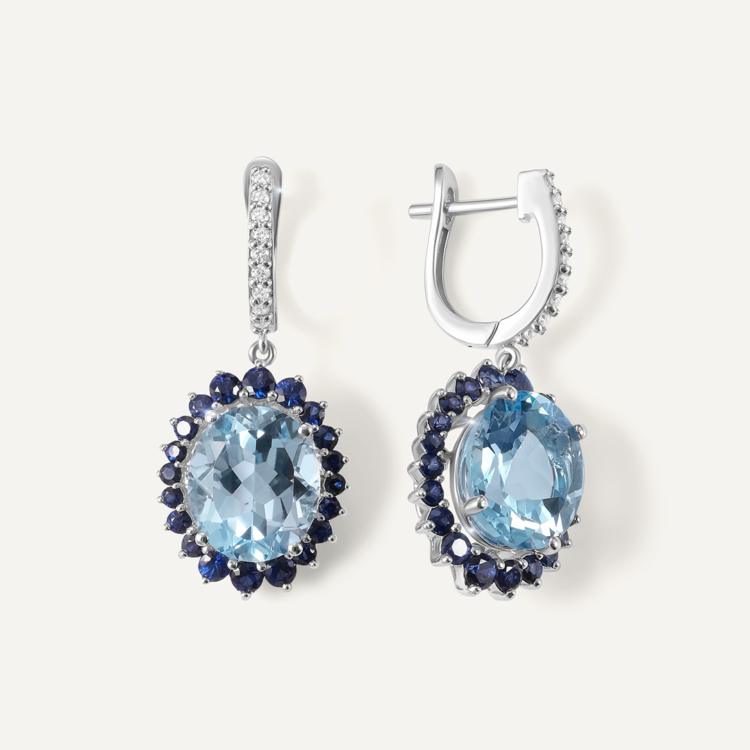 Серебряные серьги с изумрудами, сапфирами и рубина...