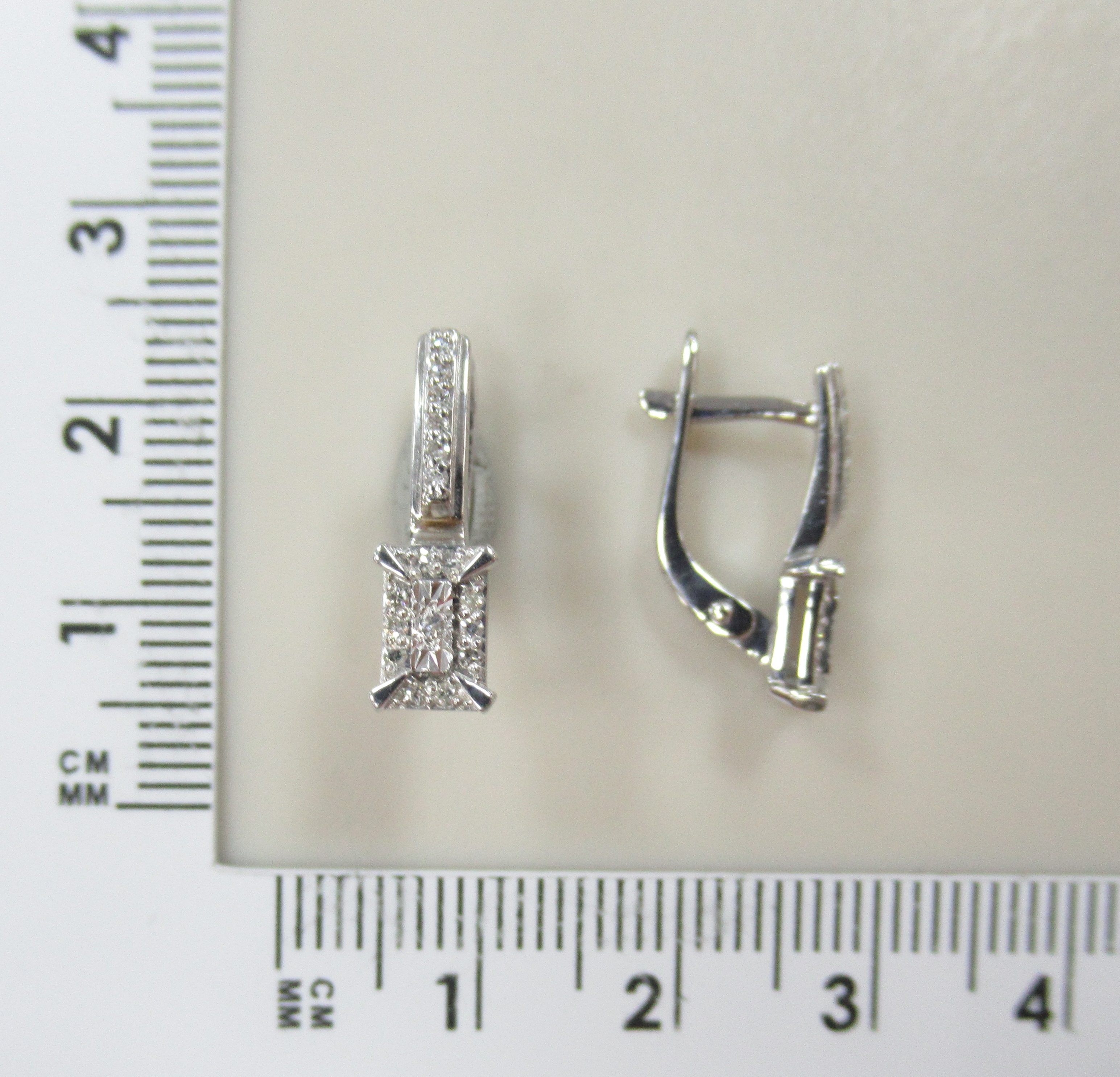 Золотые серьги 585 пробы; родий; вставки 2 Фианит бесцв.; 72 Фианит бесцв.;