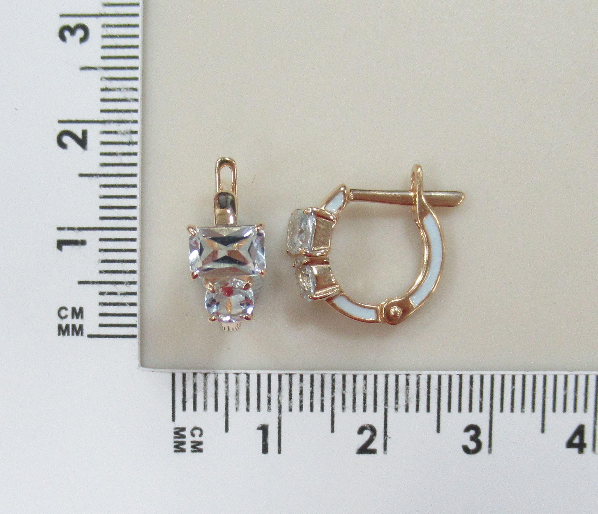 Золотые серьги 585 пробы; родий; вставки 6 Фианит бесцв.;