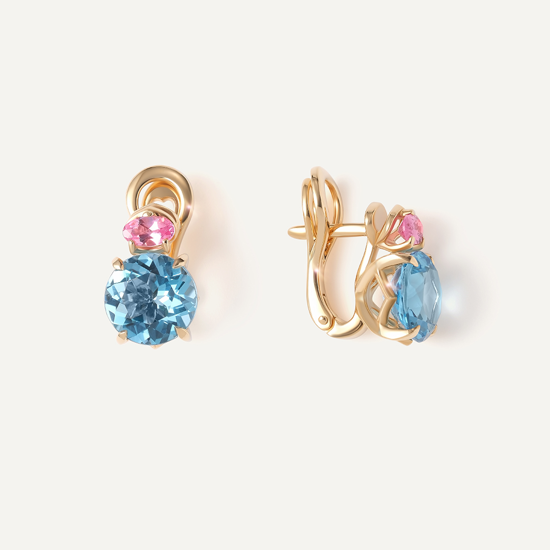 Серьги-пусеты из белого золота с голубыми бриллиантами