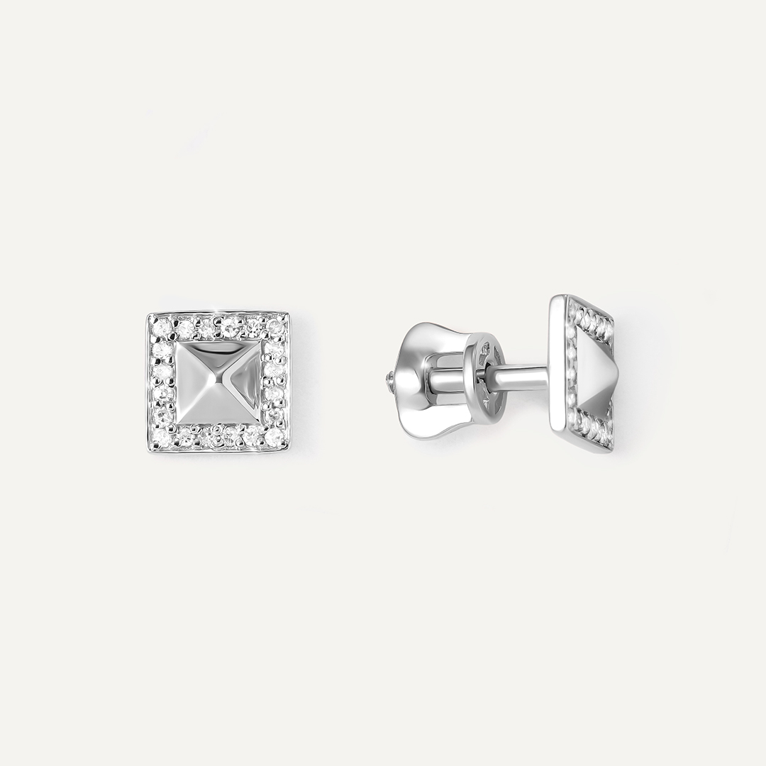 Серьги-пусеты из белого золота с бриллиантами "Клевер"