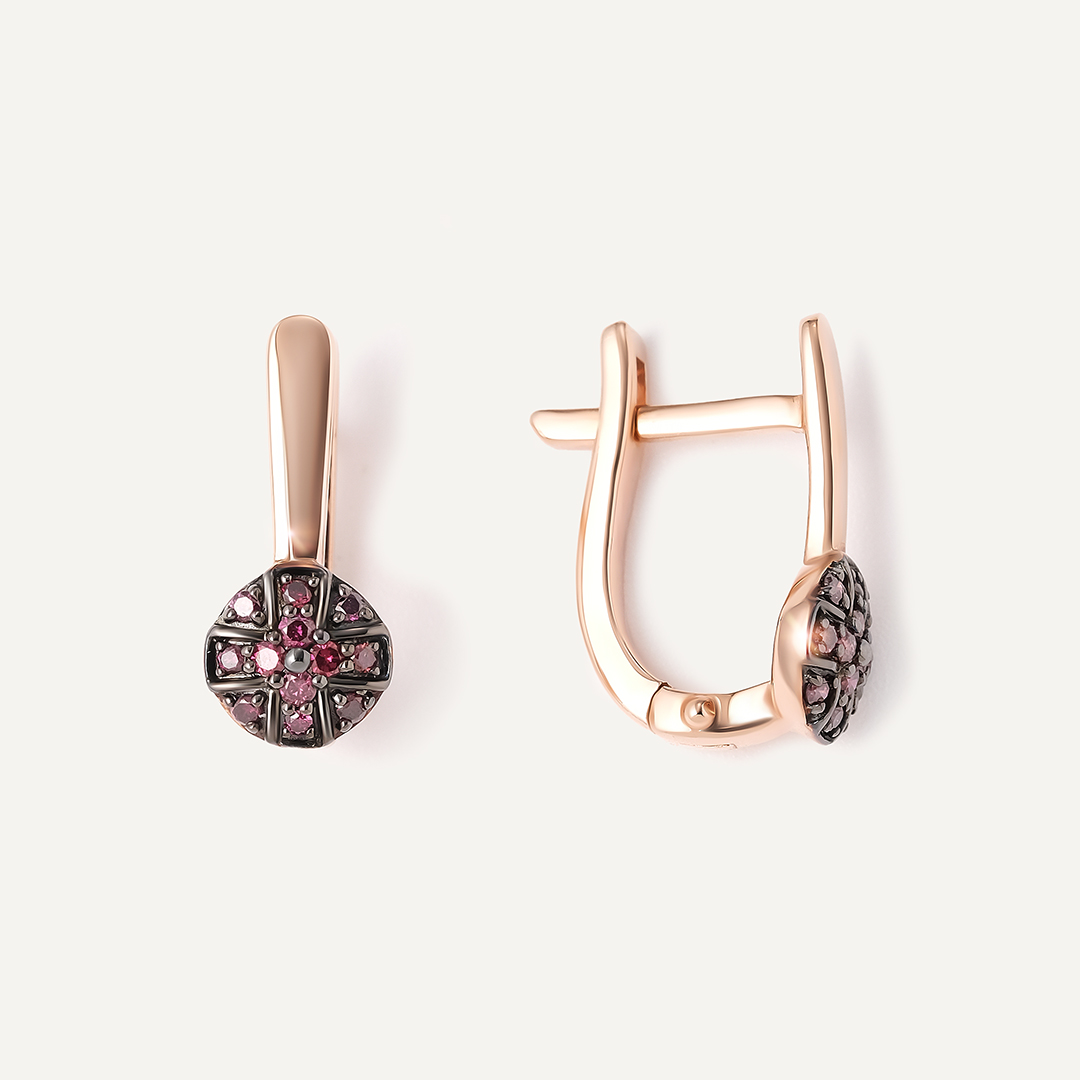 Серебряные серьги-пусеты с розовыми бриллиантами
