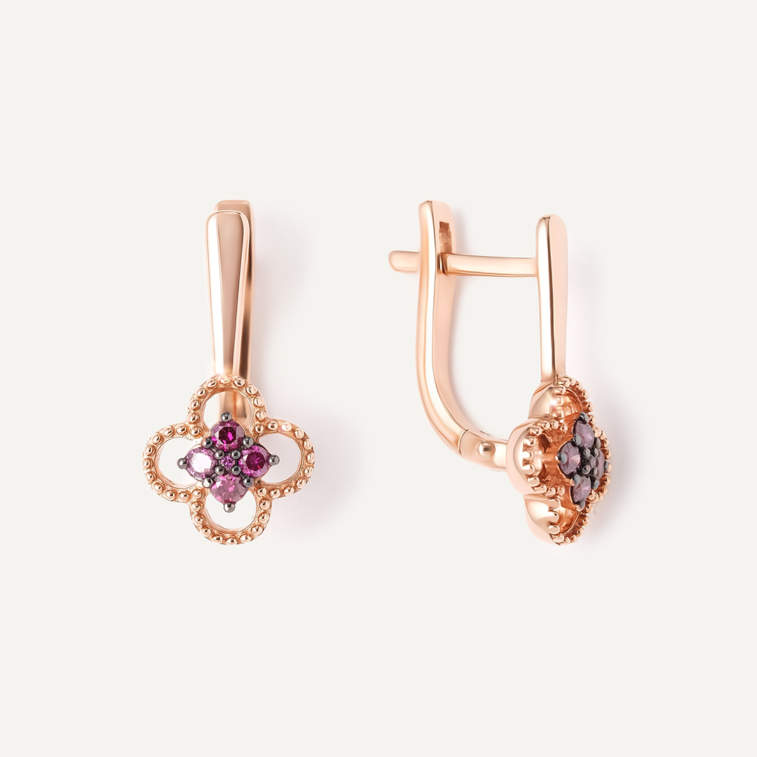 Серебряные серьги с розовыми бриллиантами "Клевер"