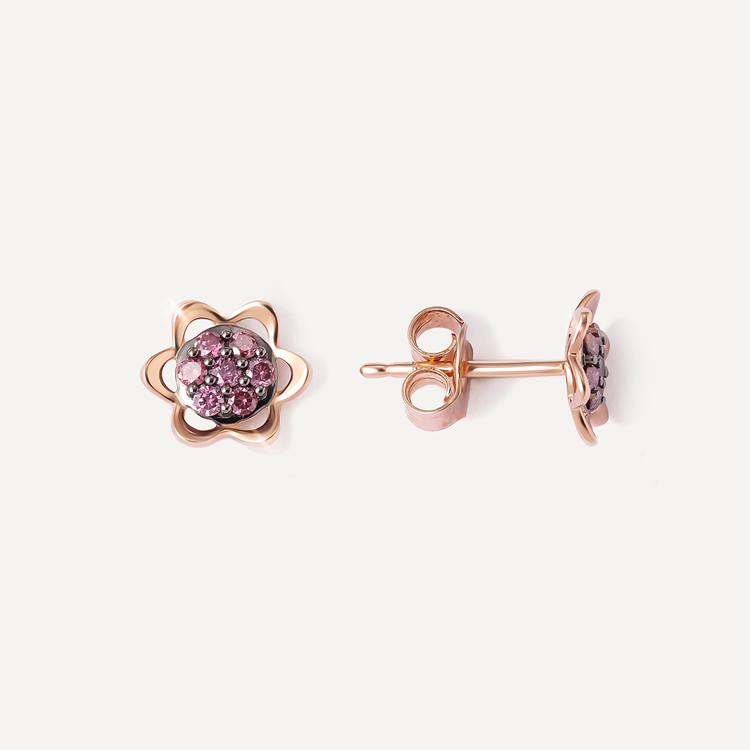 Серебряные серьги-пусеты с розовыми бриллиантами "Цветы"