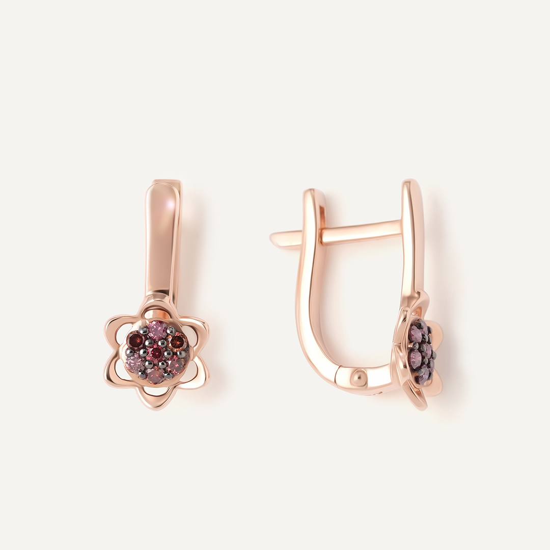 Серебряные серьги с розовыми бриллиантами "Цветы"