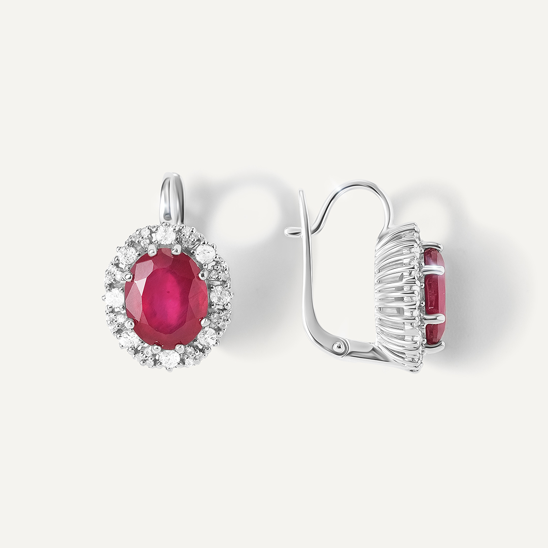 Серьги из белого золота с рубинами