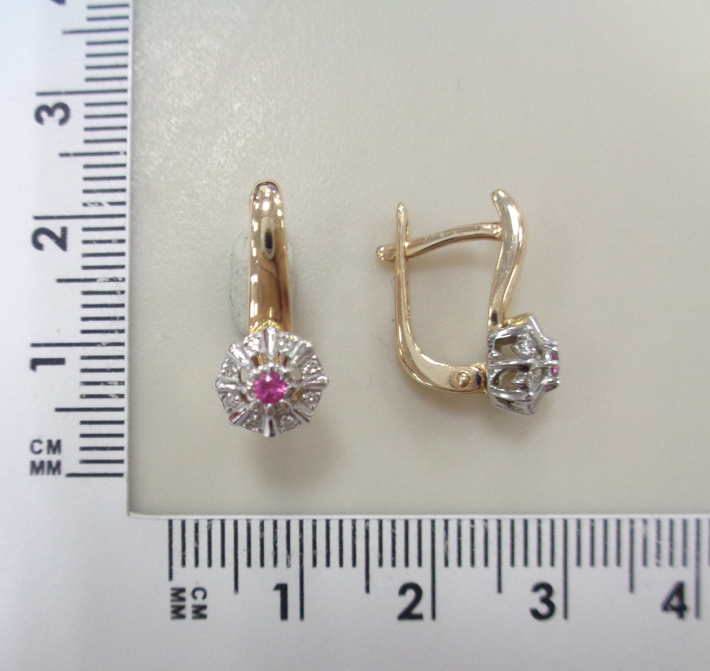 Серьги из золота с рубином и бриллиантом