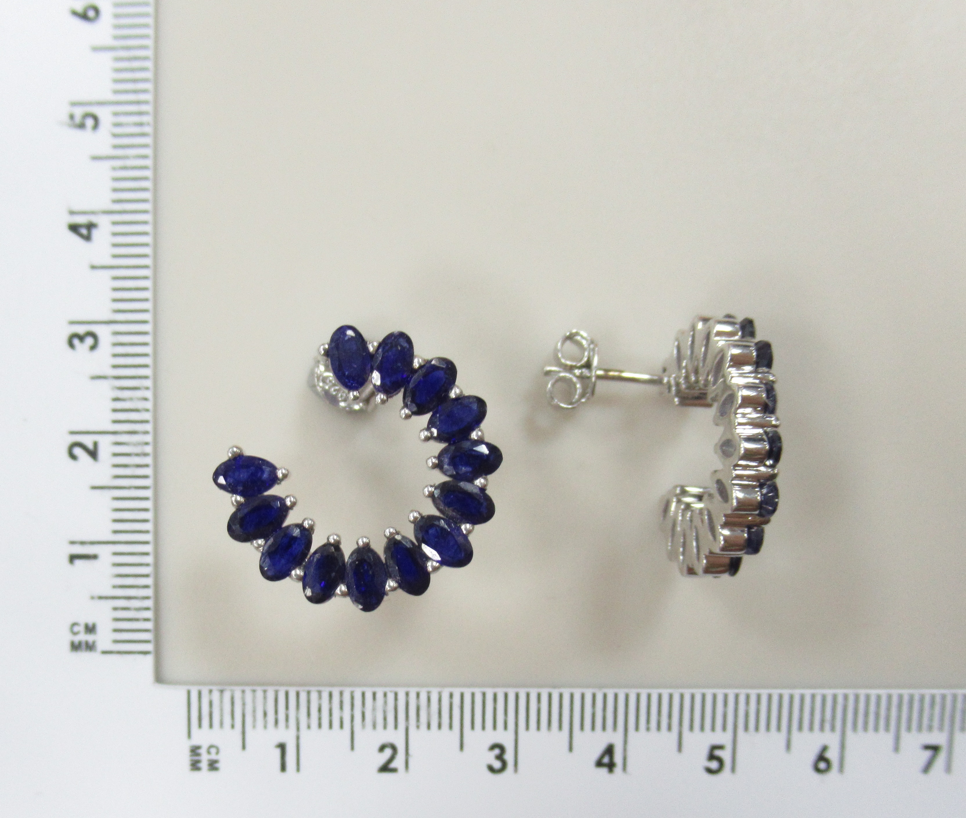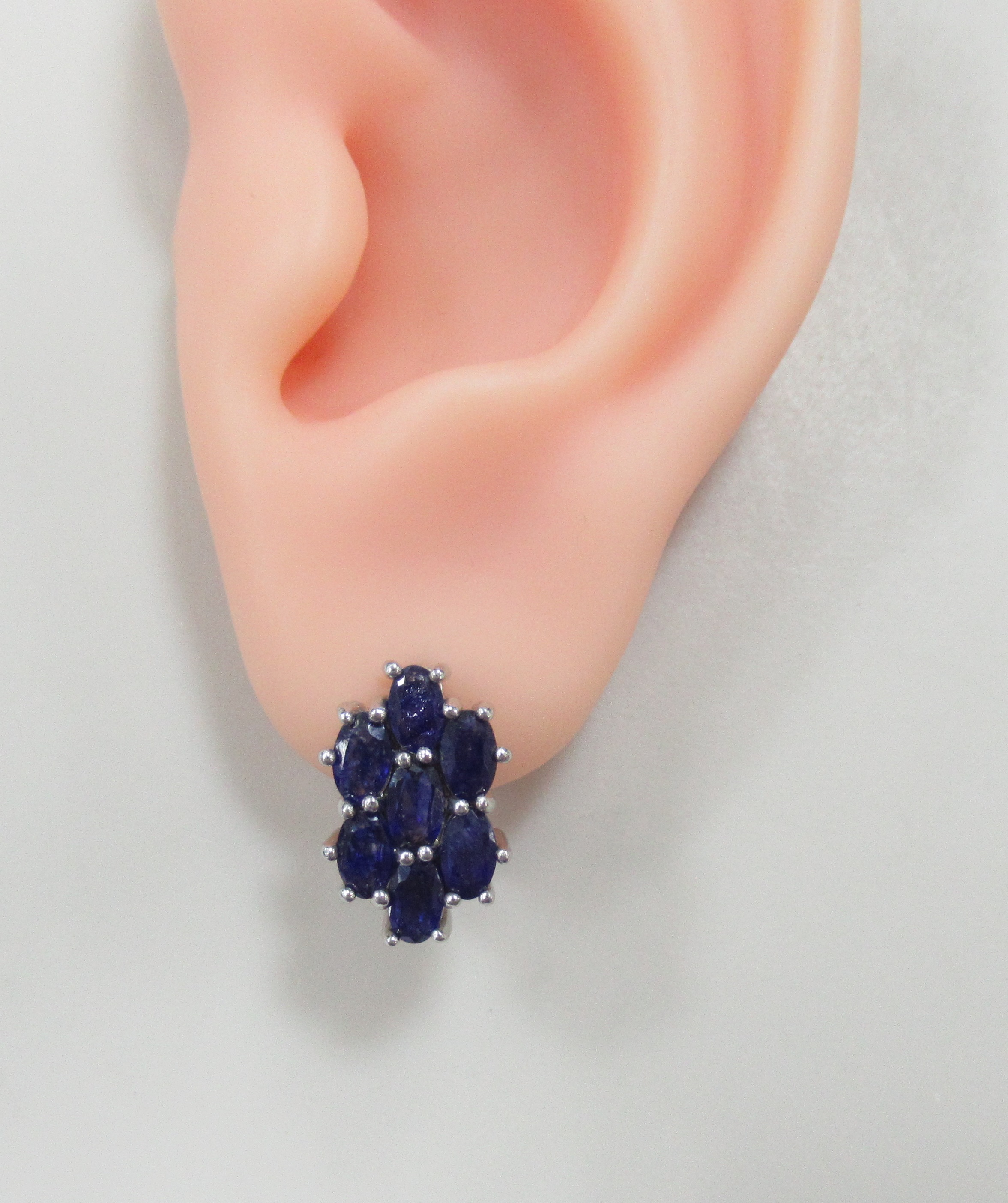 Серебряные серьги-пусеты с сапфирами "Цветы"