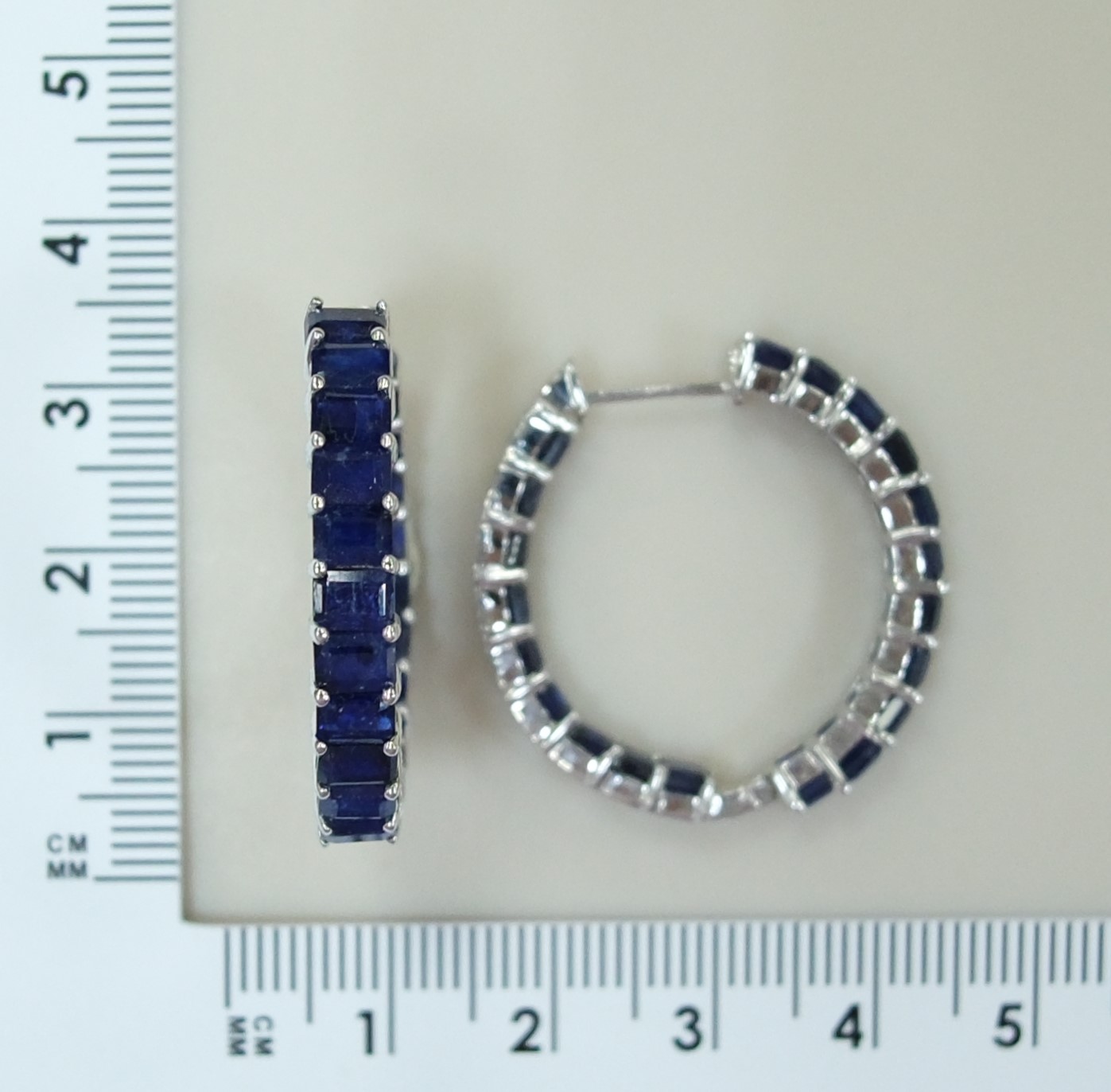 Серьги-конго из белого золота с сапфирами