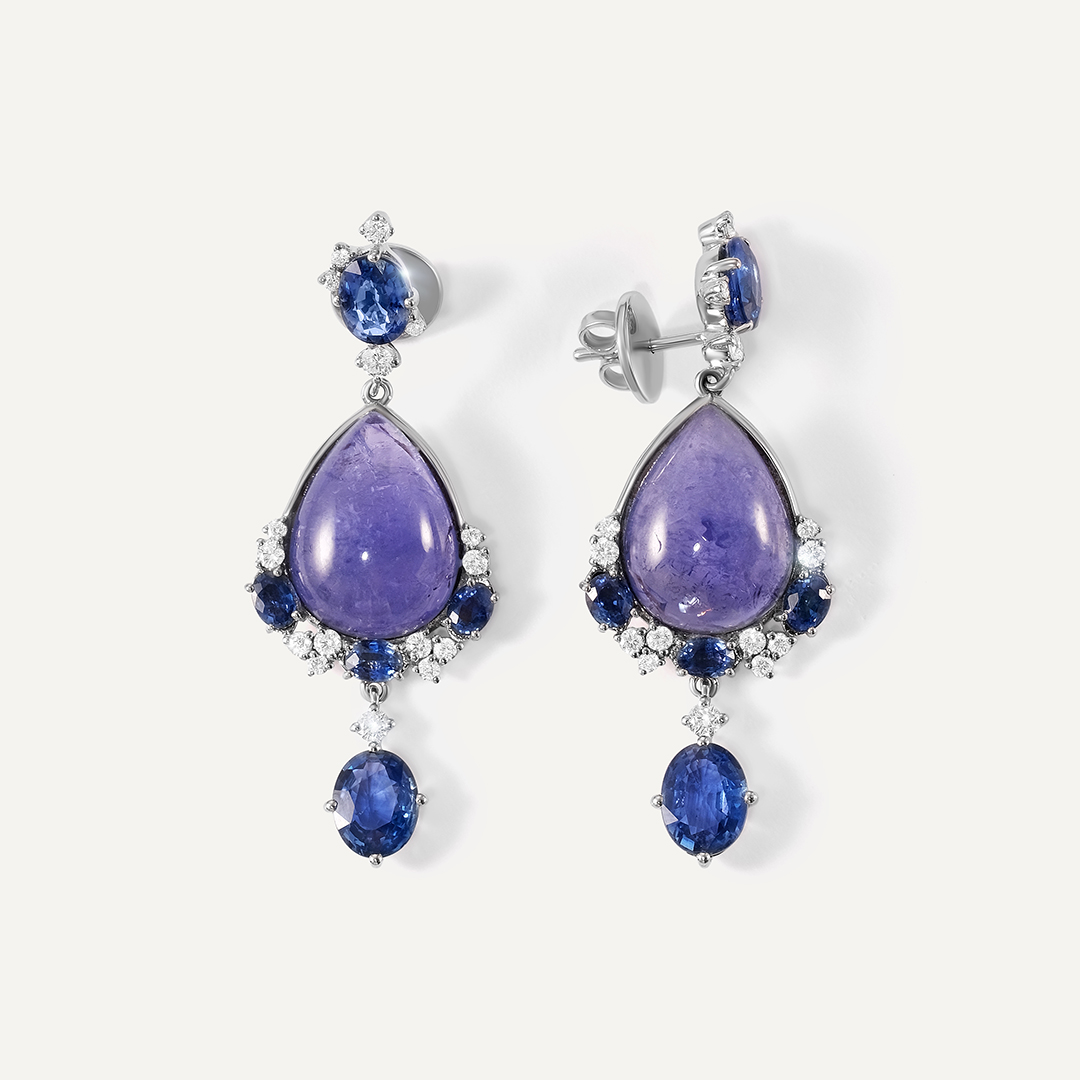 Серебряные серьги-трансформеры с сапфирами и танзанитами