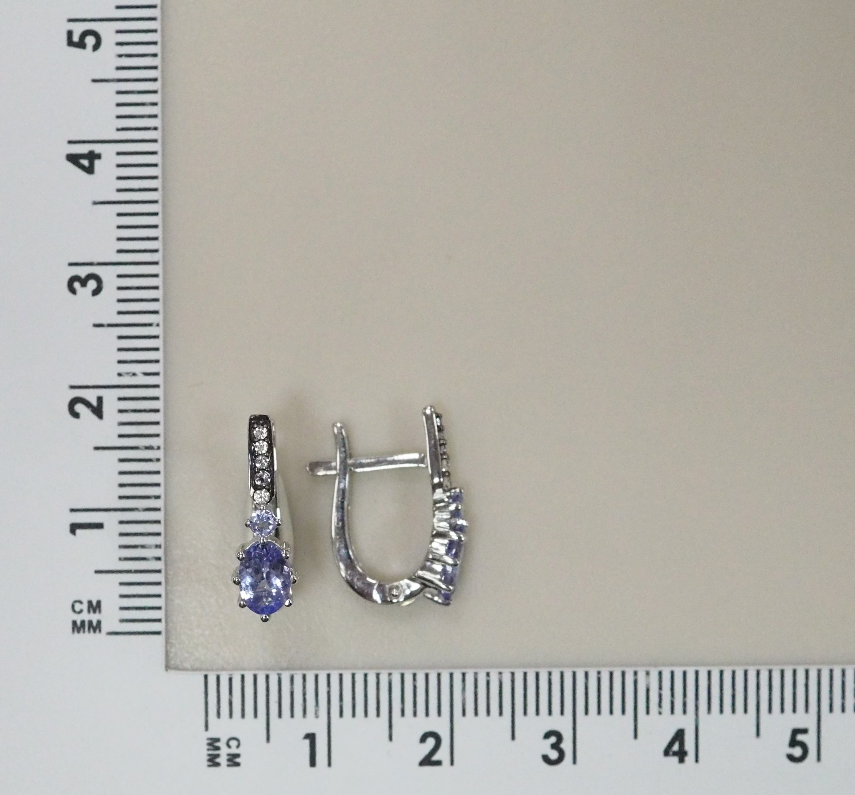 Серебряные серьги 925 пробы; вставки 8 Танзанит; 8 Топаз бесцв.; 12 Фианит бесцв.;