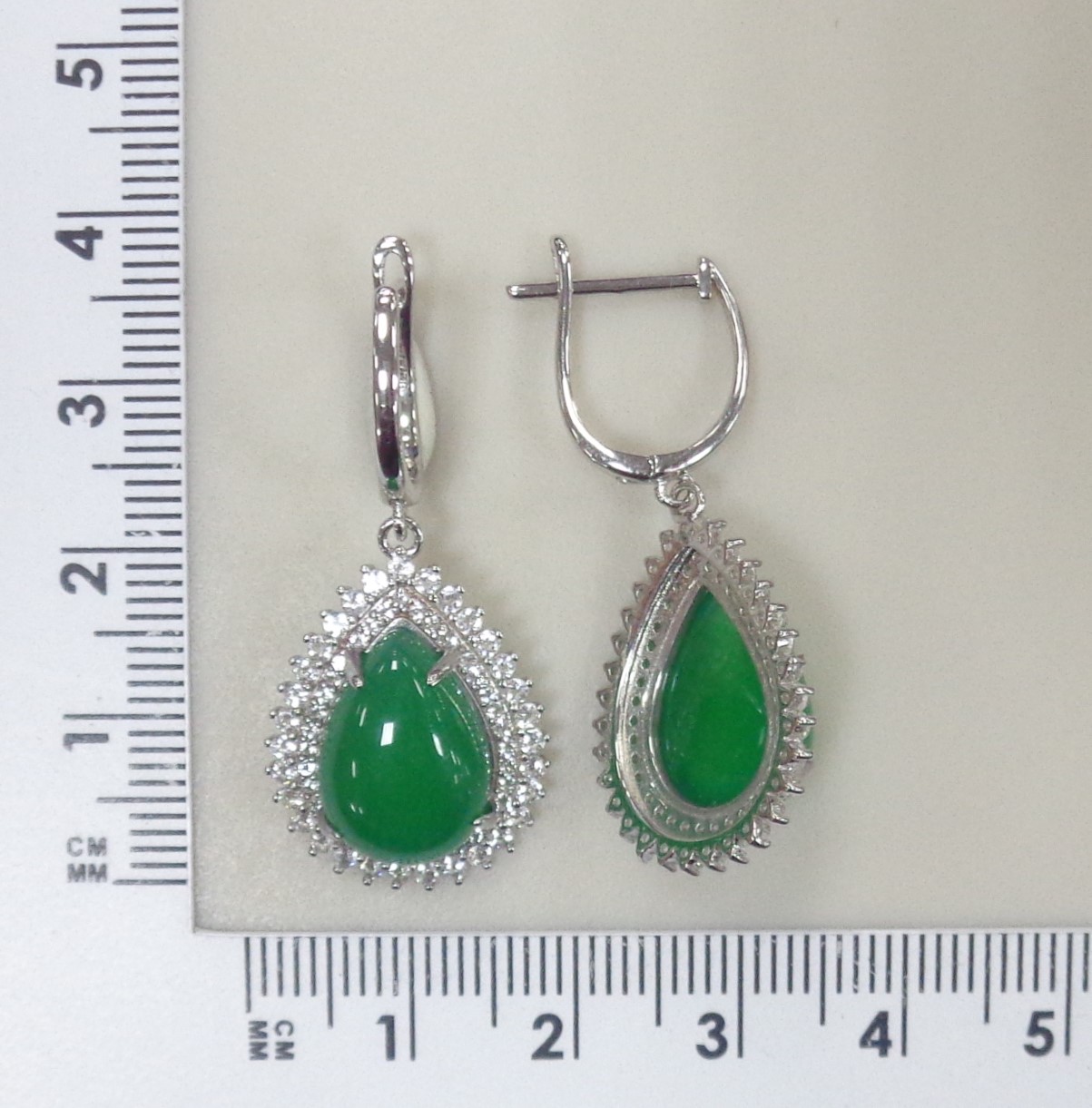 Серебряные серьги-пусеты с зеленым кубическим цирк...