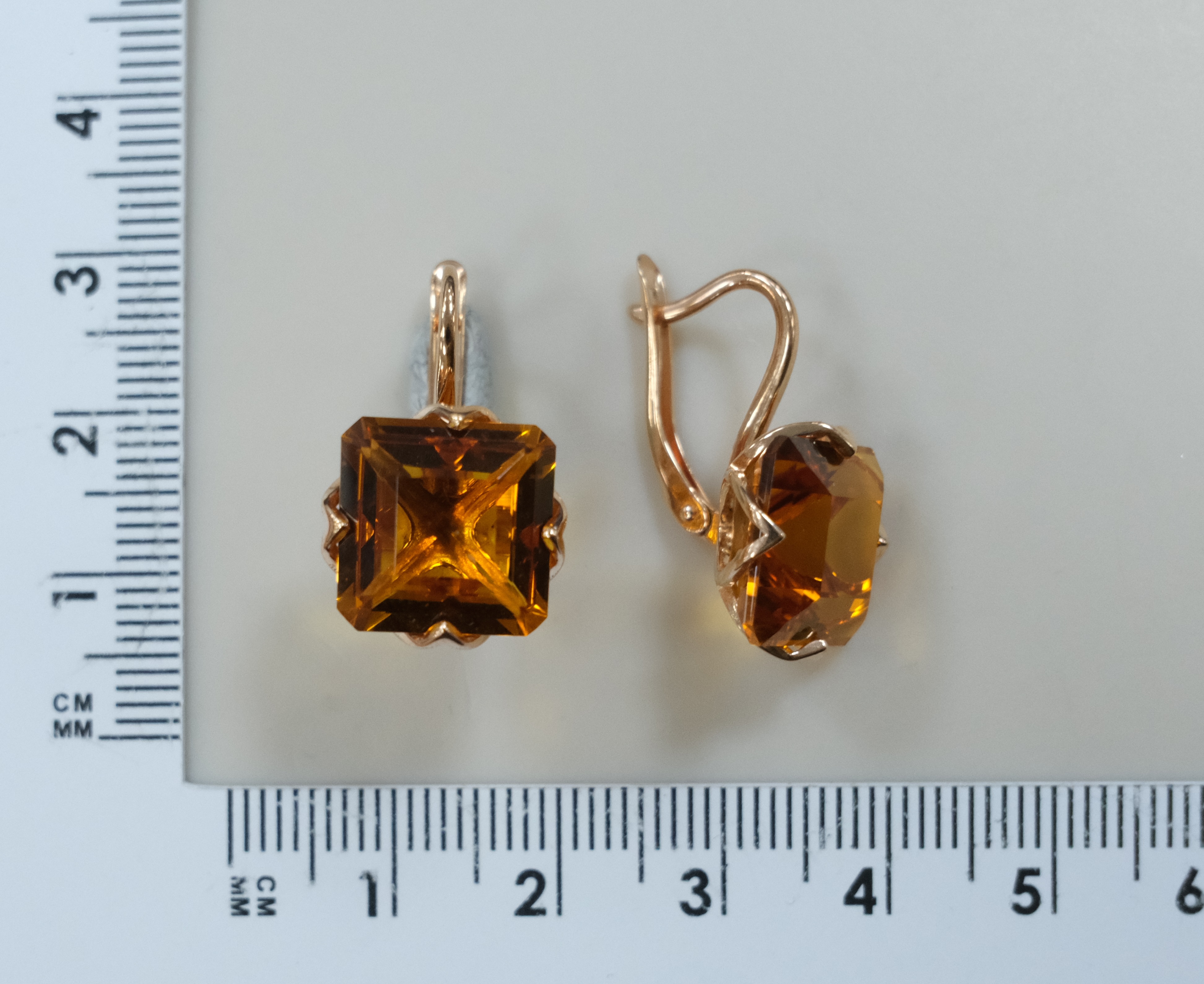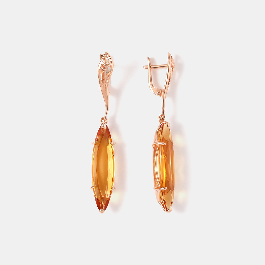 Серебряные серьги-пусеты с цитринами "Мотыльки"