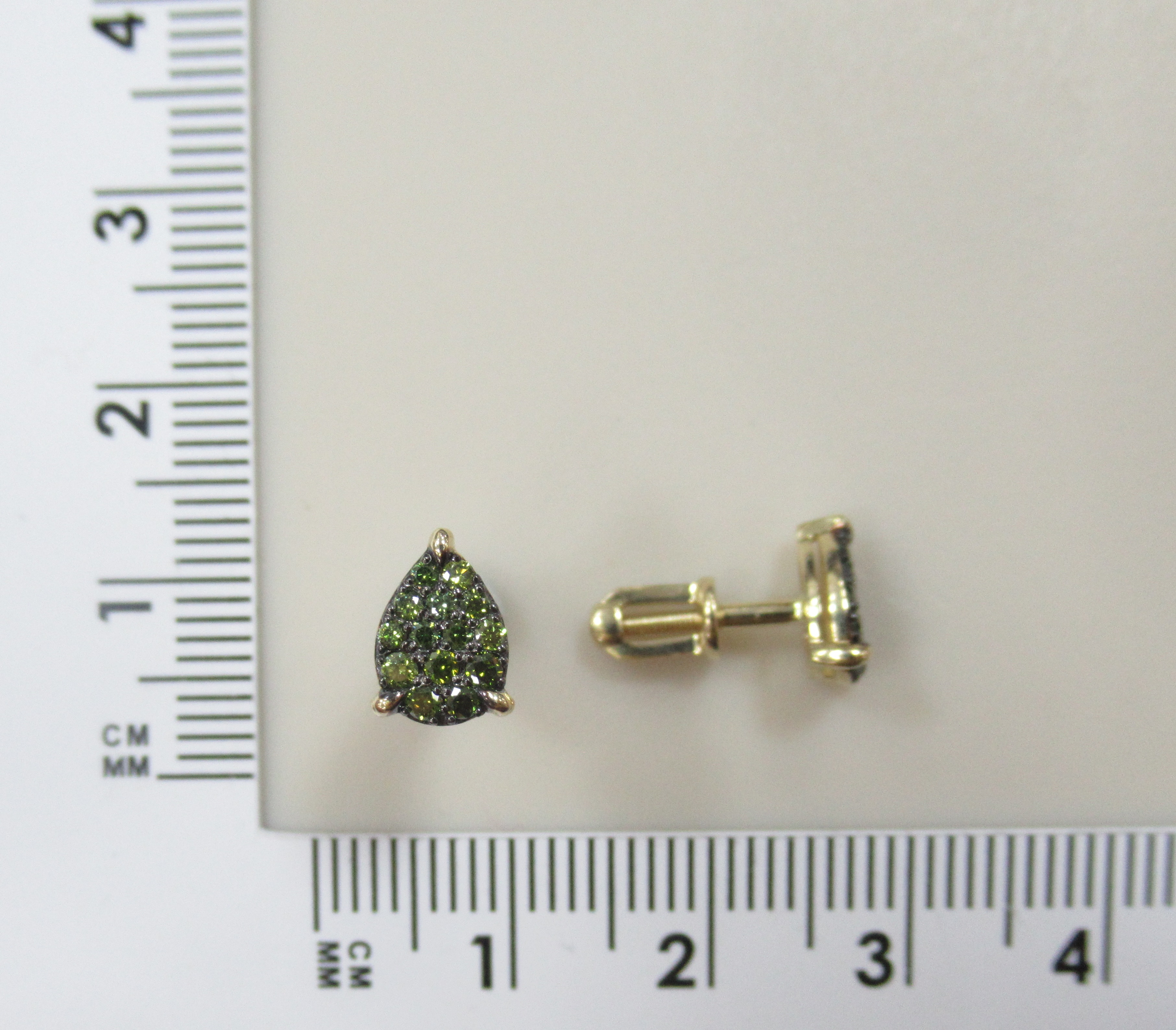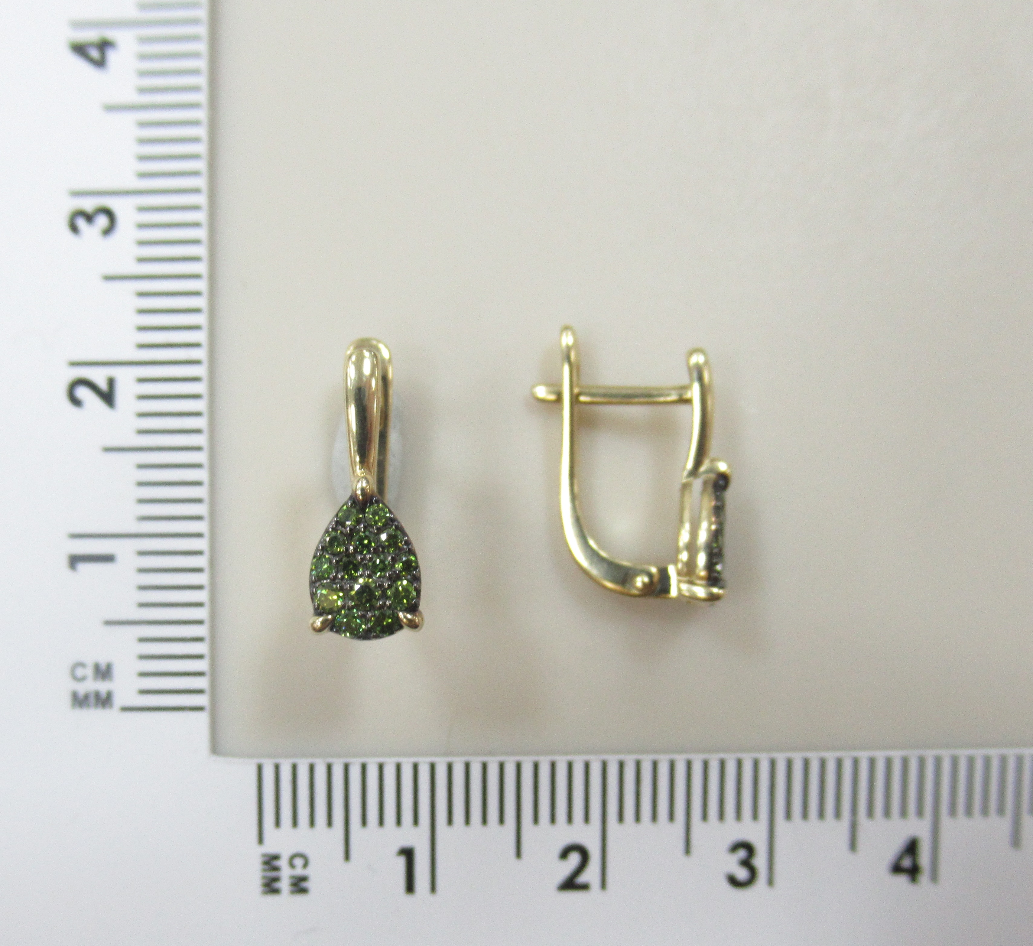 Серьги-пусеты из желтого золота с зелеными бриллиантами