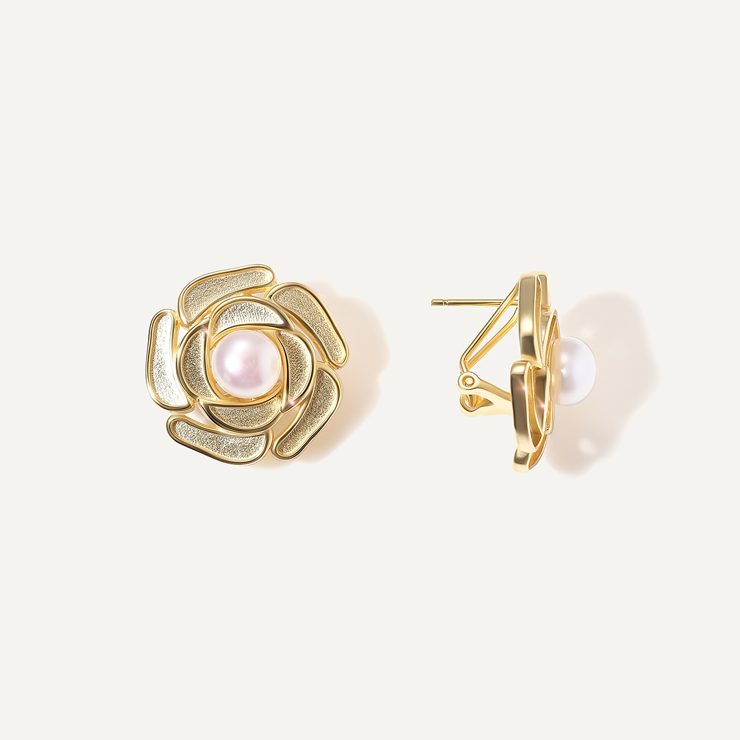 Бижутерные серьги с розовым жемчугом "Цветы"